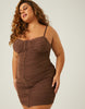 Curve Ruched Hook Front Mini Dress Plus Size Dresses Brown 1XL -2020AVE