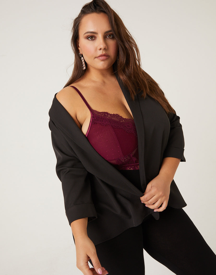 Sexy, sultry, and sheer, the Plus Size Sheer Lace Bodysuit is a killer piece that gives off all the flirty vibes. Wear it under an oversized blazer for a trendy, seductive look.