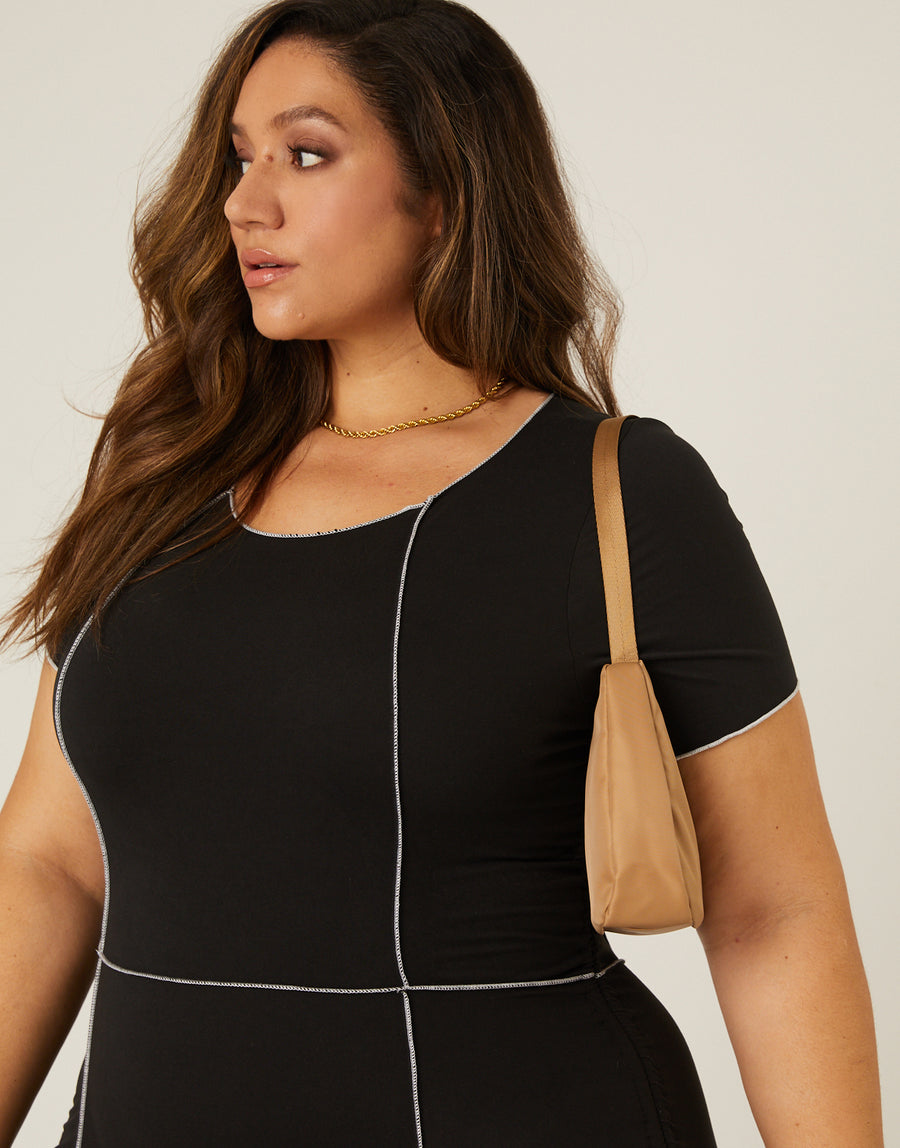 The Curve Statement Seams Dress is cute enough to wear out yet modest enough to wear to the office.
