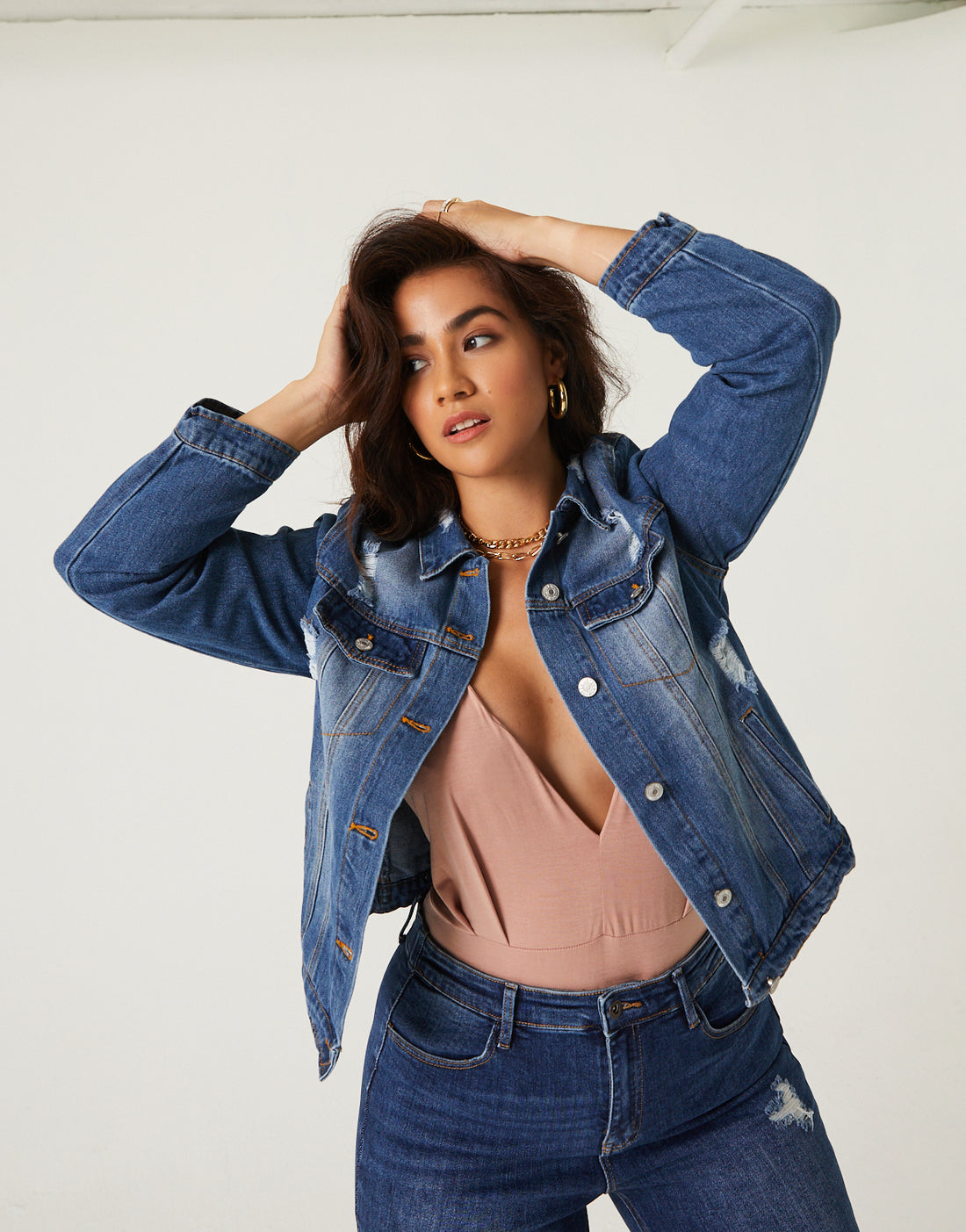 The Curve Mesmerized Denim Jacket is a definite need for the cooler weather. This ripped denim jacket is an easy addition to your casual outfit.