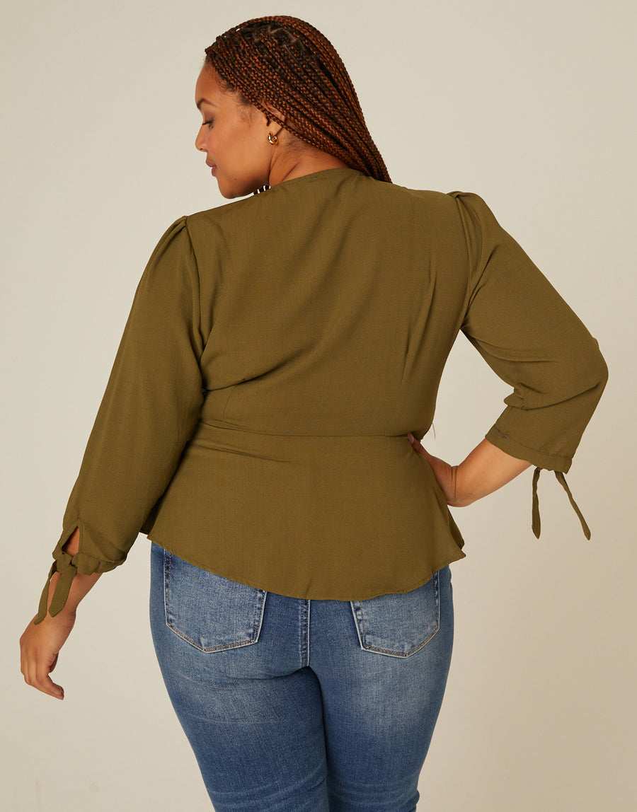 Curve Long Sleeve Woven Wrap Top Plus Size Tops Olive 1XL -2020AVE