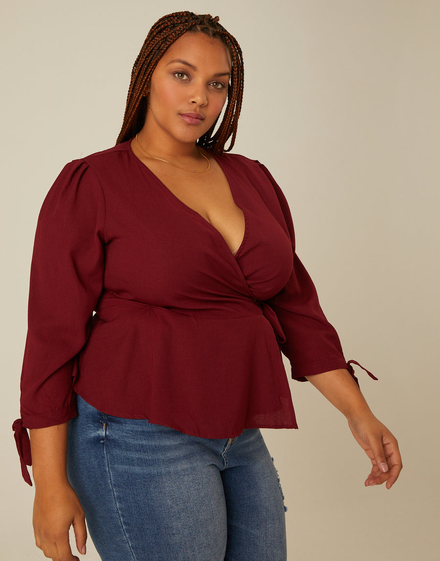 Curve Long Sleeve Woven Wrap Top Plus Size Tops -2020AVE