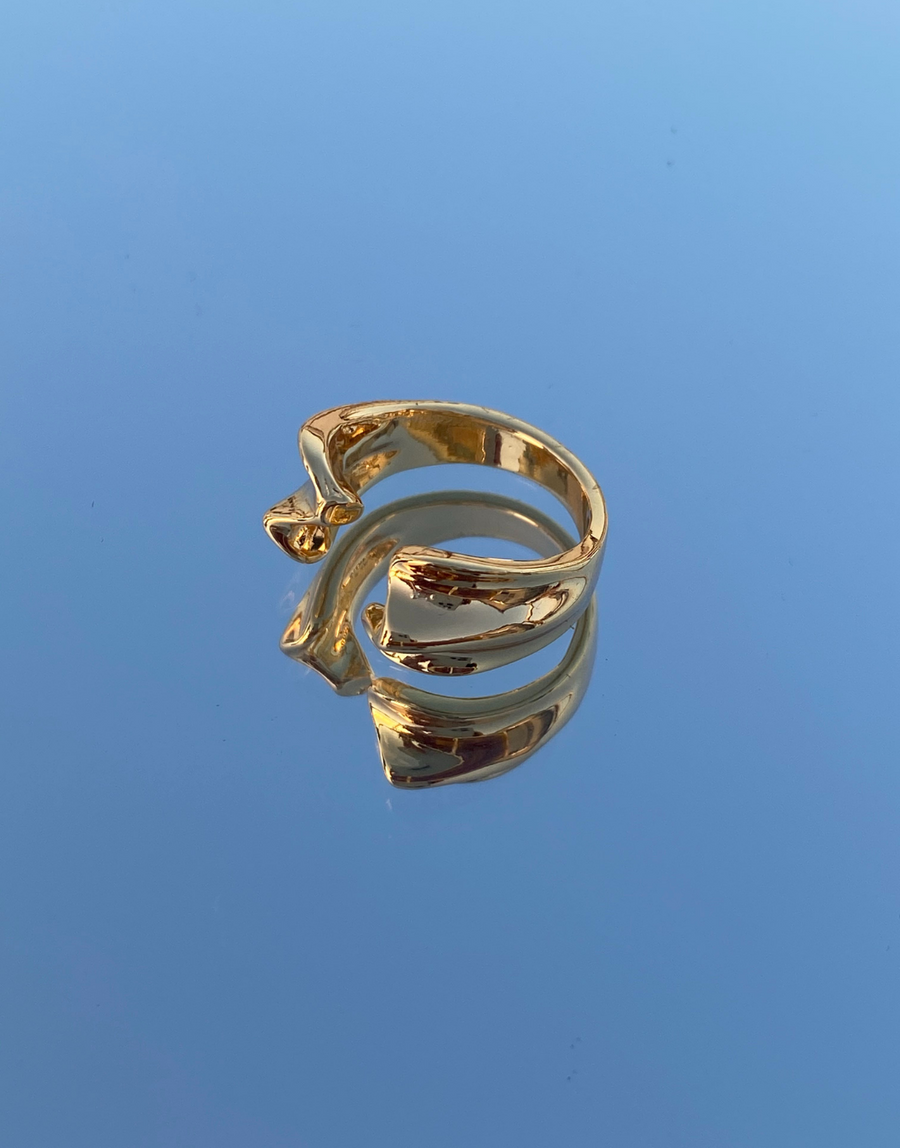 - Demi-fine, 18K gold-plated, open ring. Adjustable.