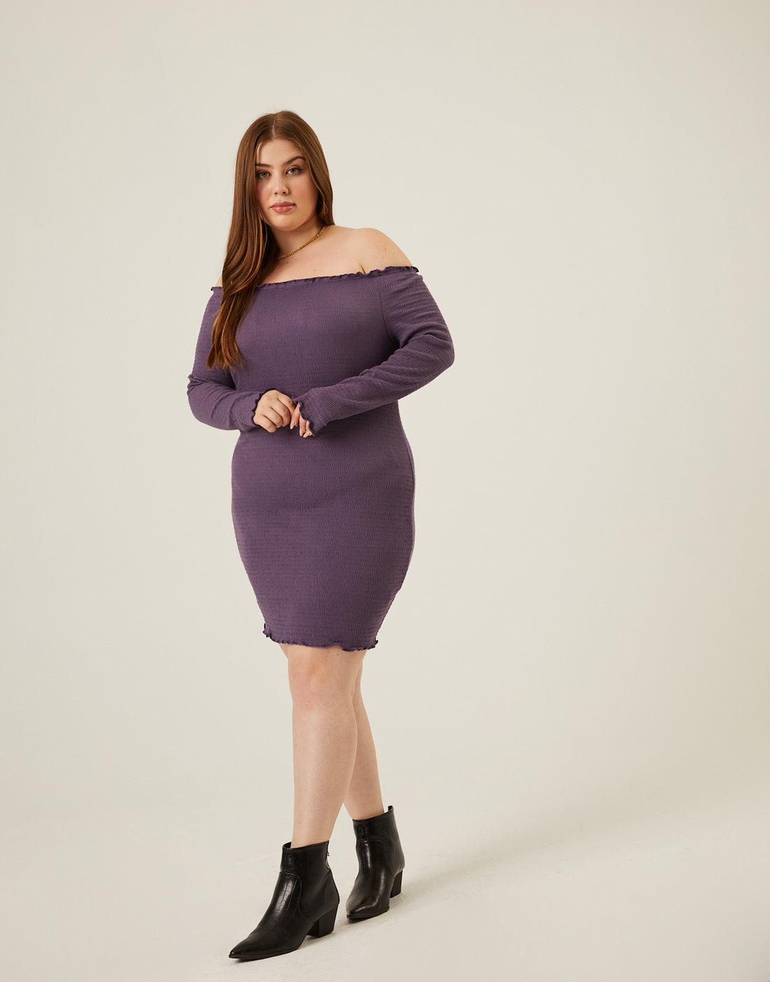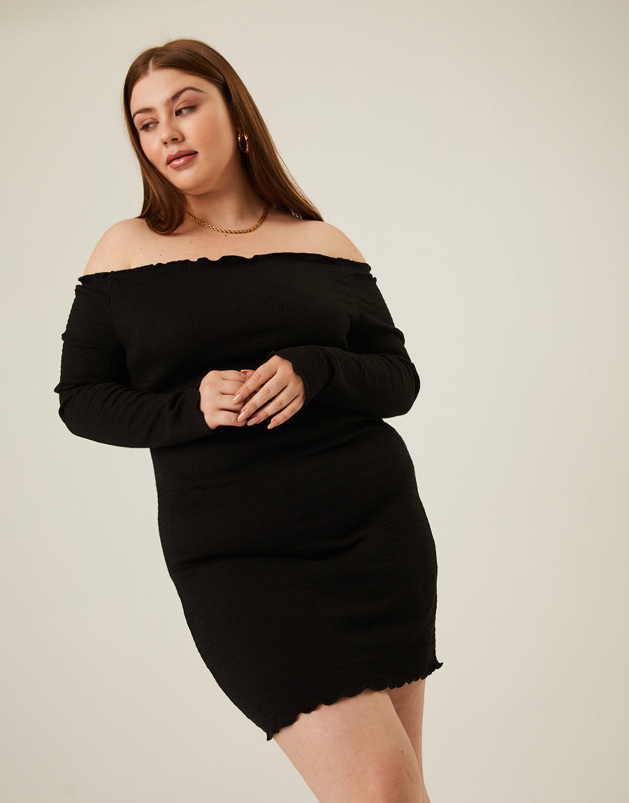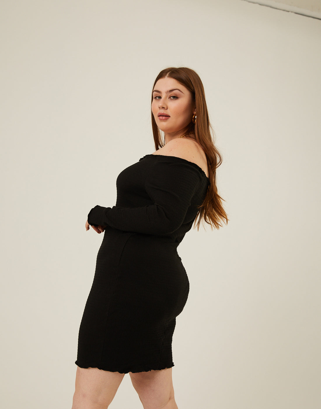 Simple and bodycon, the Curve Smocked Off The Shoulder Dress is a staple you'll love to fit into your closet.