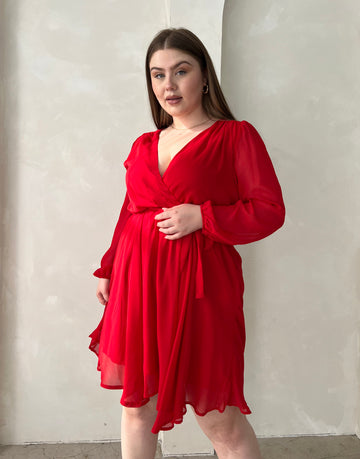 Plus Size Chiffon Surpliced Long Sleeve Dress