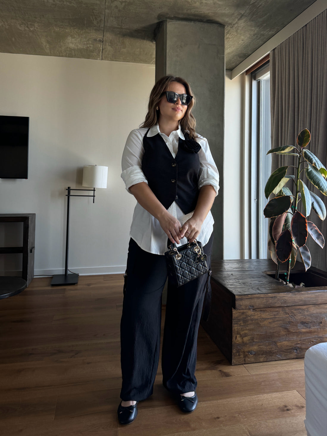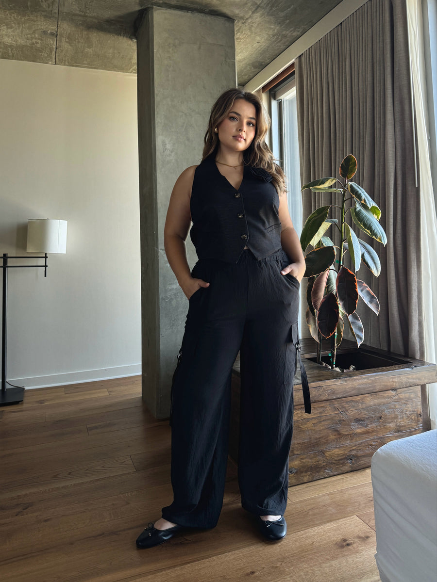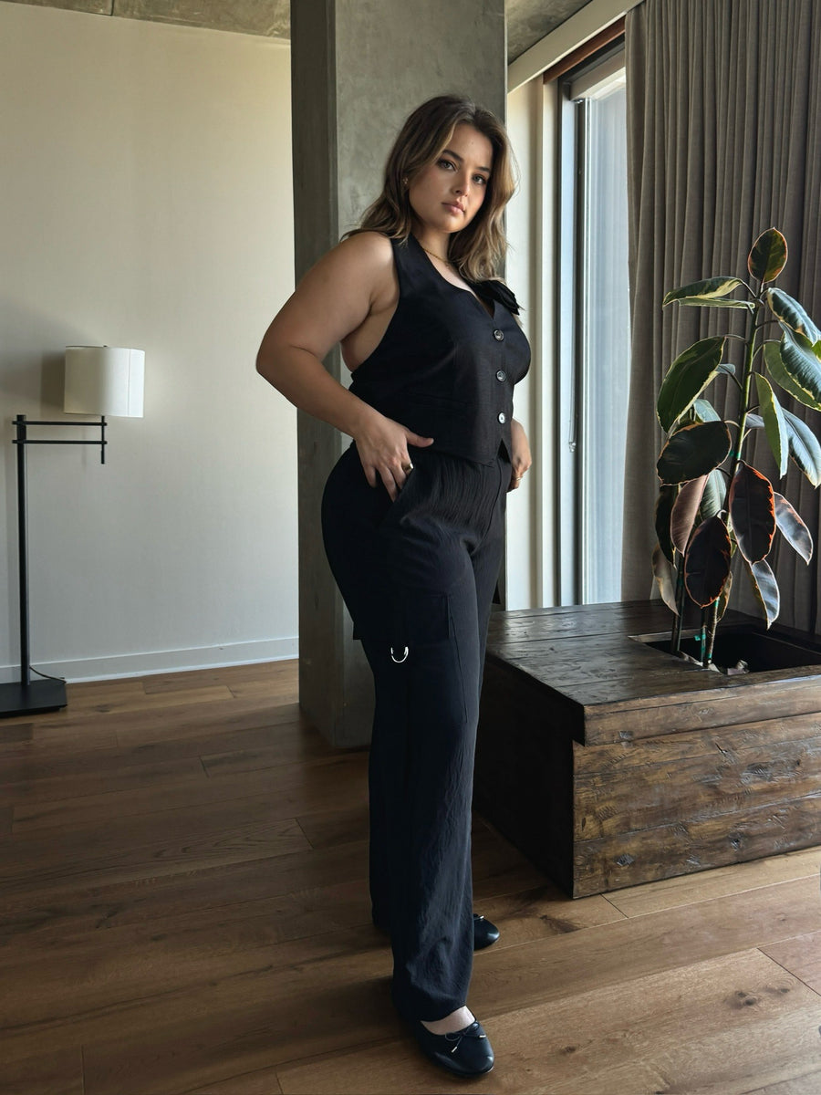 Sleek, sculpted, and undeniably chic—the Plus Size Rose Halter Vest brings high-fashion energy to your everyday fits. Featuring a halter neckline with button-front detailing, this tailored vest is elevated with a luxe rose embellishment and finished with an elastic back for flexible comfort and a flattering shape. Whether you're layering it over a crisp shirt or styling it solo for a night out, this piece is giving structured femininity with a soft edge. Pair it with wide-leg trousers, satin skirts, or even throw it over a dress—the options are endless. A go-to for curvy style mavens who want timeless silhouettes with a fresh vibe.