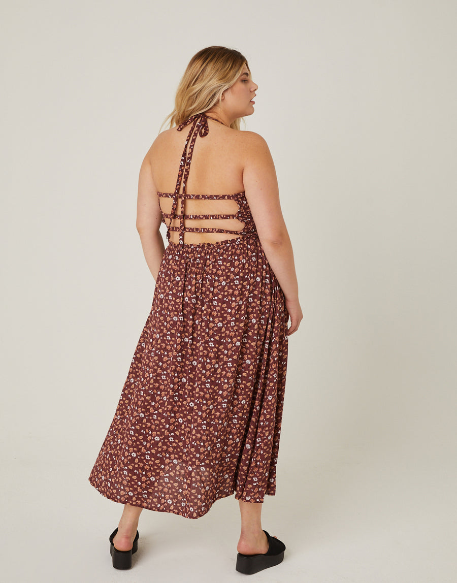 Spend your sunny days in stylish comfort in the Plus Size Halter Floral Midi Dress.