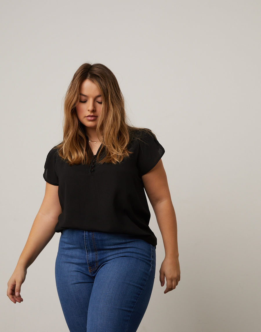 A fun and simple blouse, the Curve Capped Sleeve Blouse is versatile enough to wear to school, work, or any other occasion.