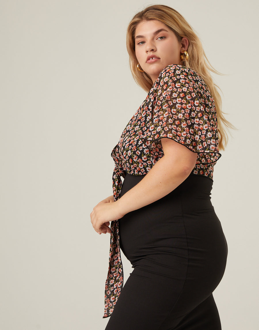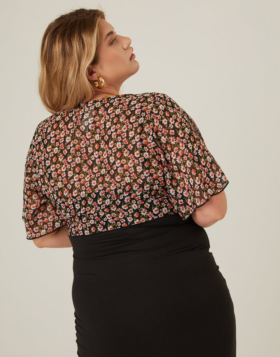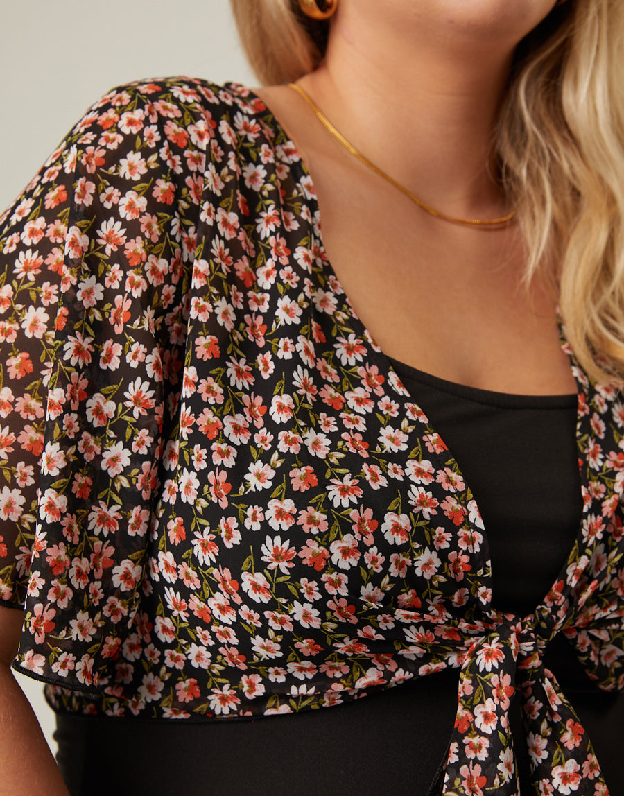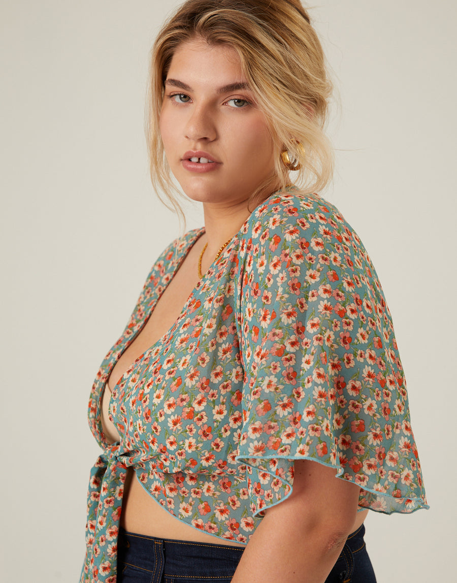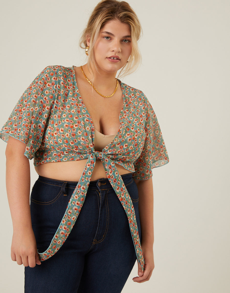A flirty and fun crop top, the Curve Chiffon Floral Tie Top is an absolute warm weather must-have.