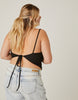 - This fun top features a pointed hem, a gathered bust, and non-adjustable spaghetti straps.