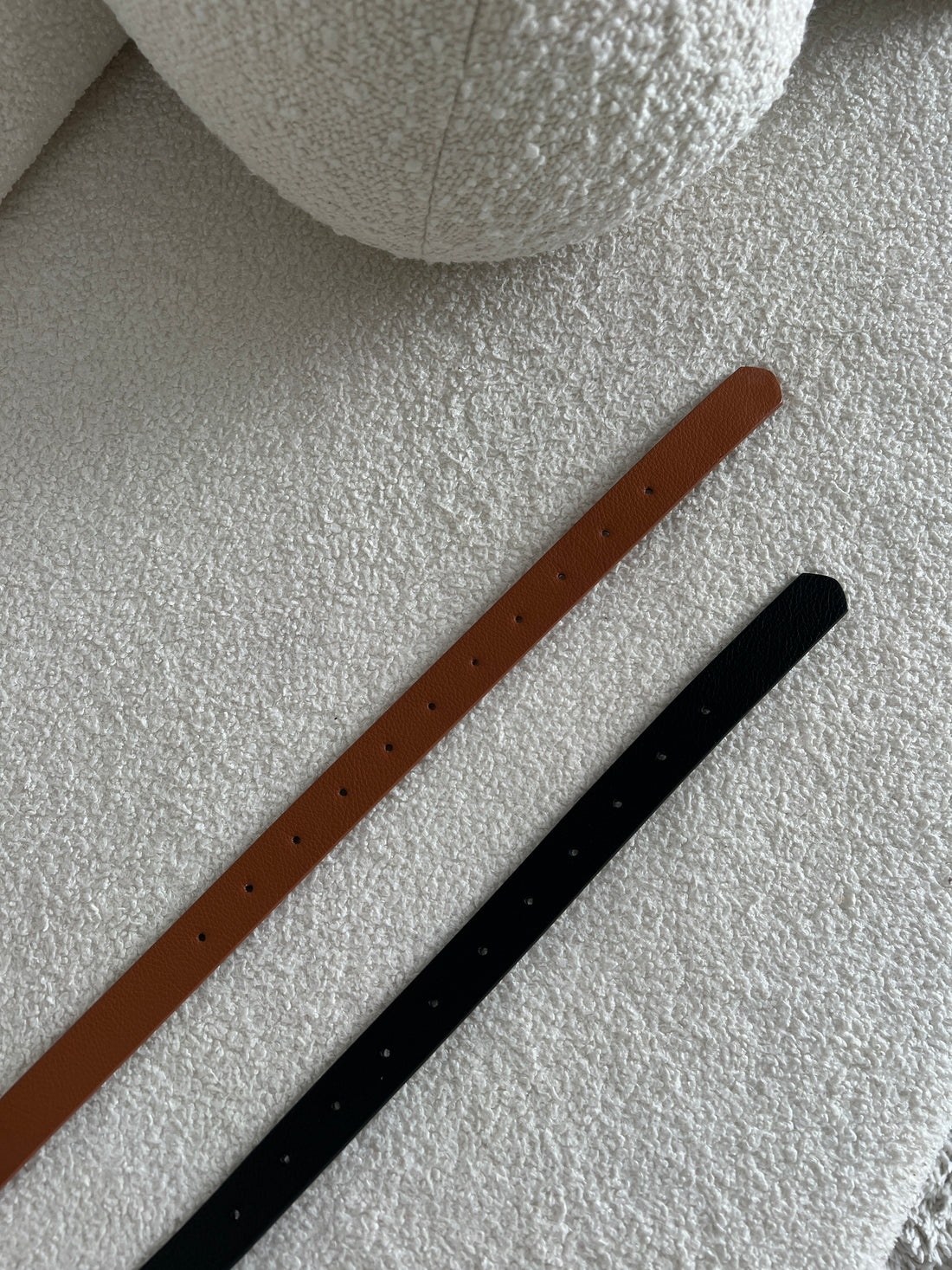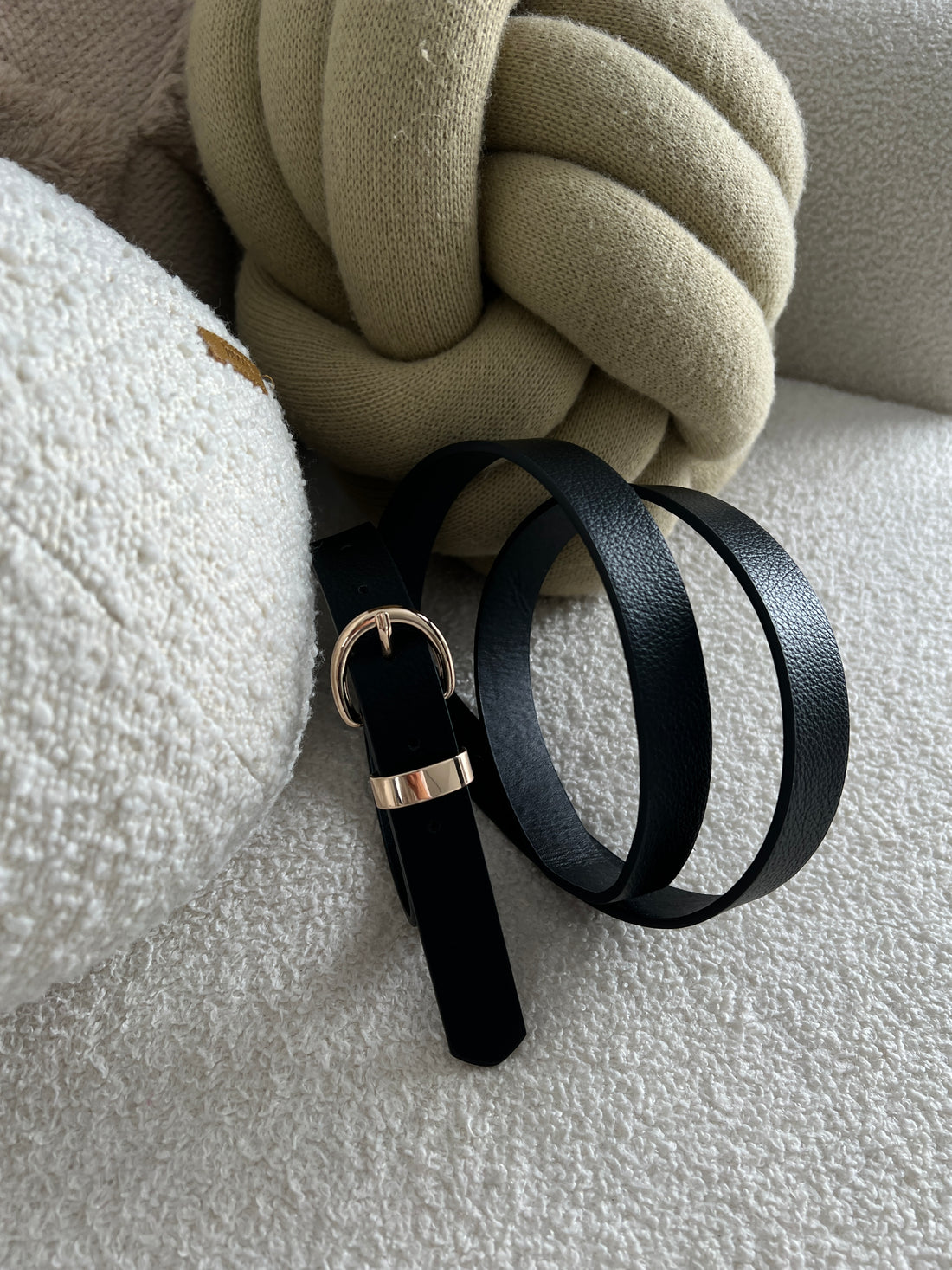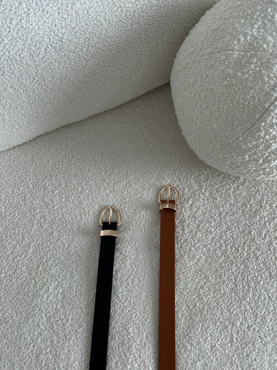 - This belt features a standard metal buckle and is made out of a faux leather material.