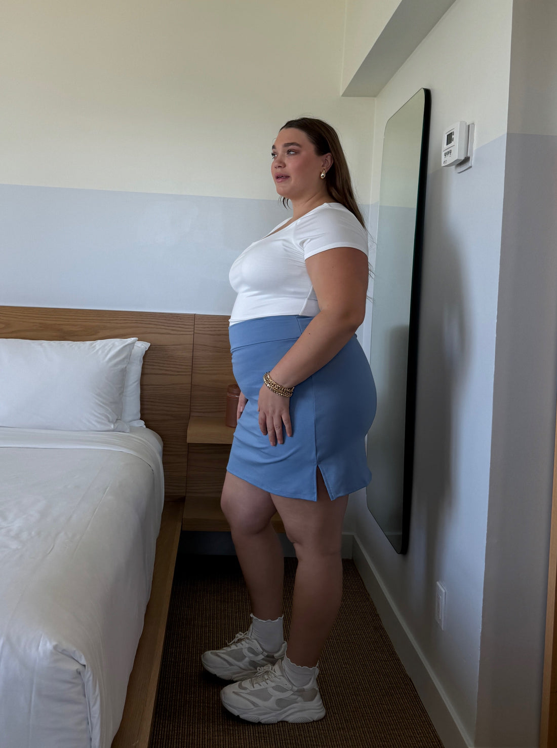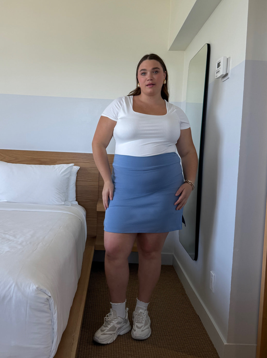 Serve looks all day in the Plus Size Tennis Mini Skirt, designed with a thick, sculpting stretch fabric that hugs your curves while keeping you comfortable. This flirty mini features built-in shorts underneath for extra support and chafe-free wear, whether you're on the move or just vibing with your besties. The clean, high-waisted fit pairs effortlessly with fitted tees, sporty tanks, or oversized button downs. Ideal for warm weather days, quick errands, or a casual night out. Style meets function—this one’s a closet MVP.