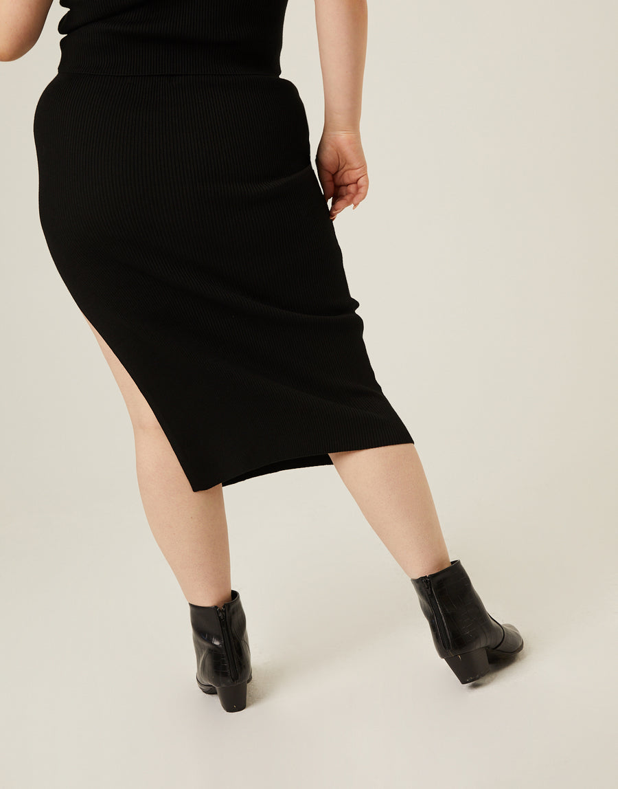 Curve Rib Knit Midi Skirt Plus Size Bottoms Black 1XL -2020AVE