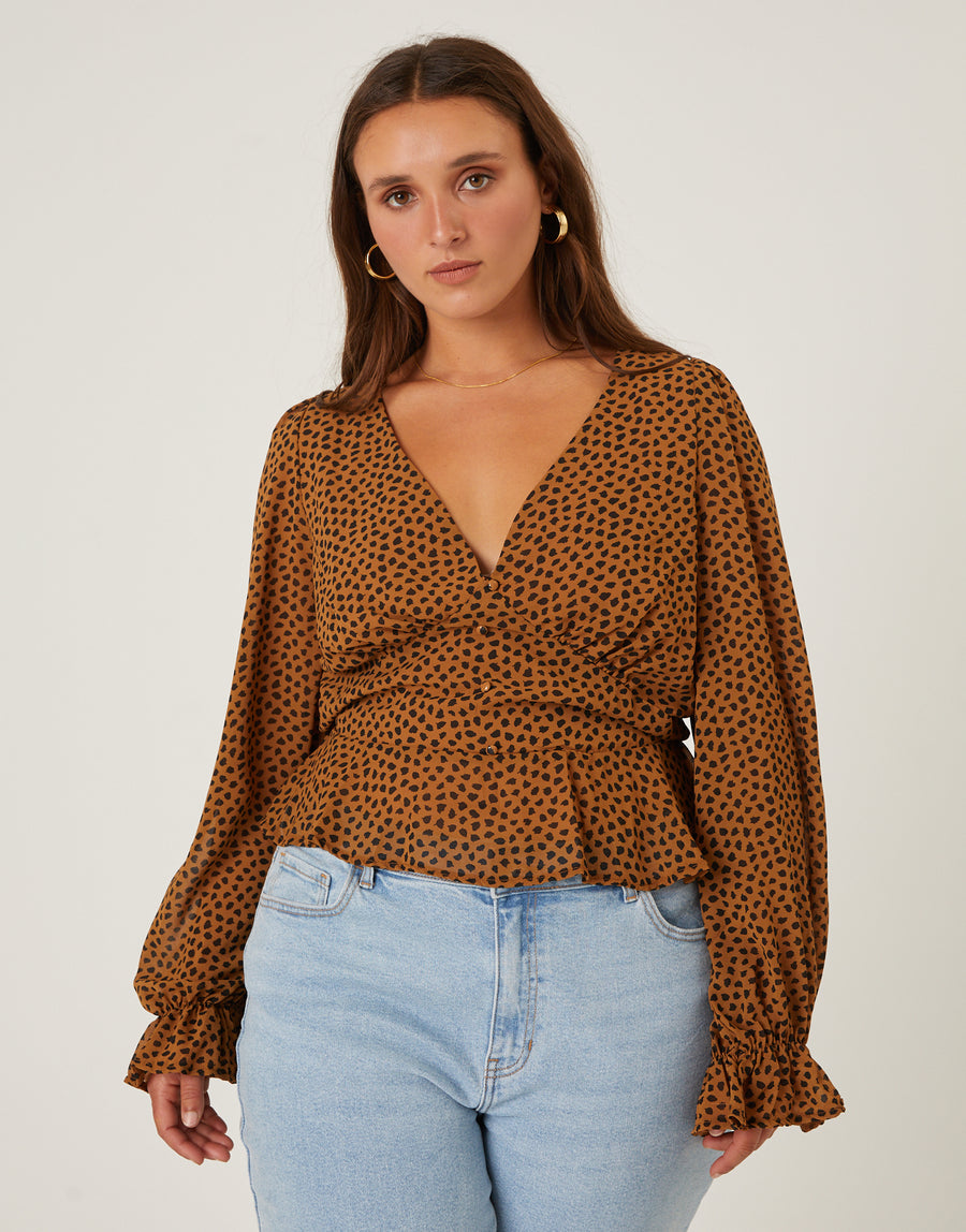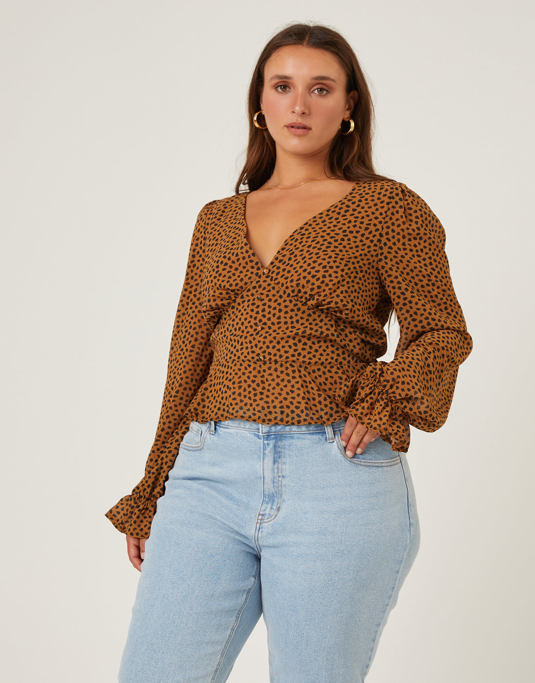 A delightful top for everything from brunching to beach days, the Curve Chiffon Spotted Long Sleeve Blouse is a flattering, fun top.