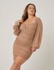 Curve Mesh Ruched Long Sleeve Dress Plus Size Dresses Taupe 1XL -2020AVE