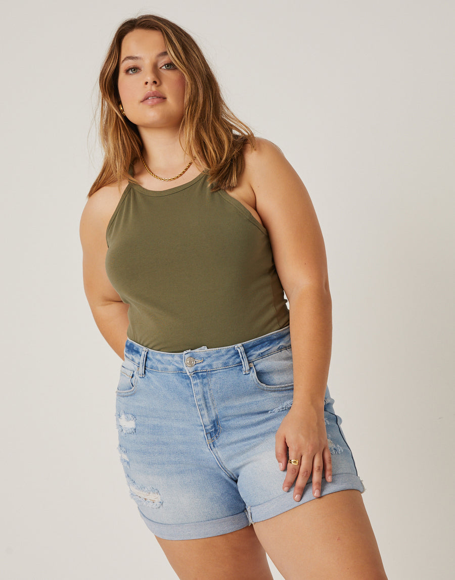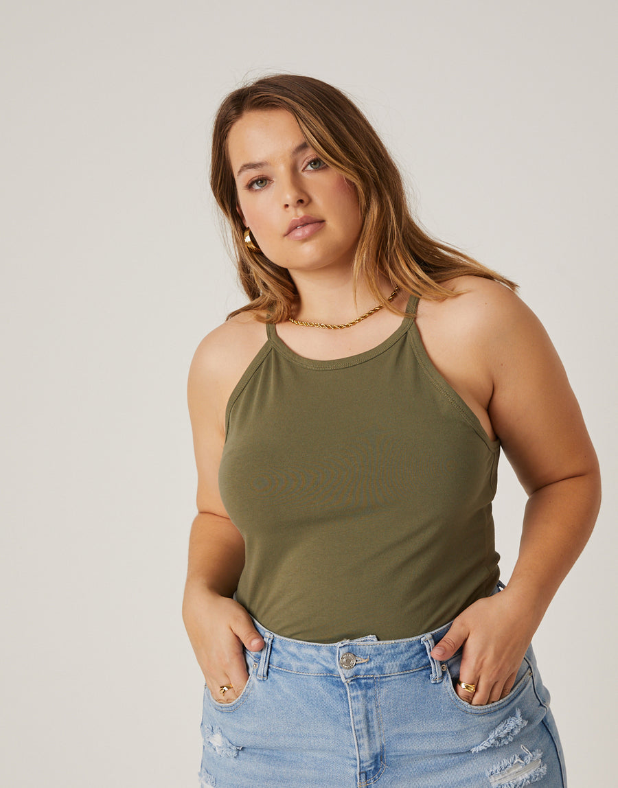 Curve Alexis High Neck Top Plus Size Tops Olive 1XL -2020AVE