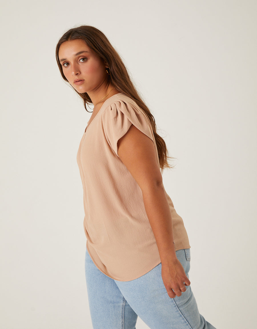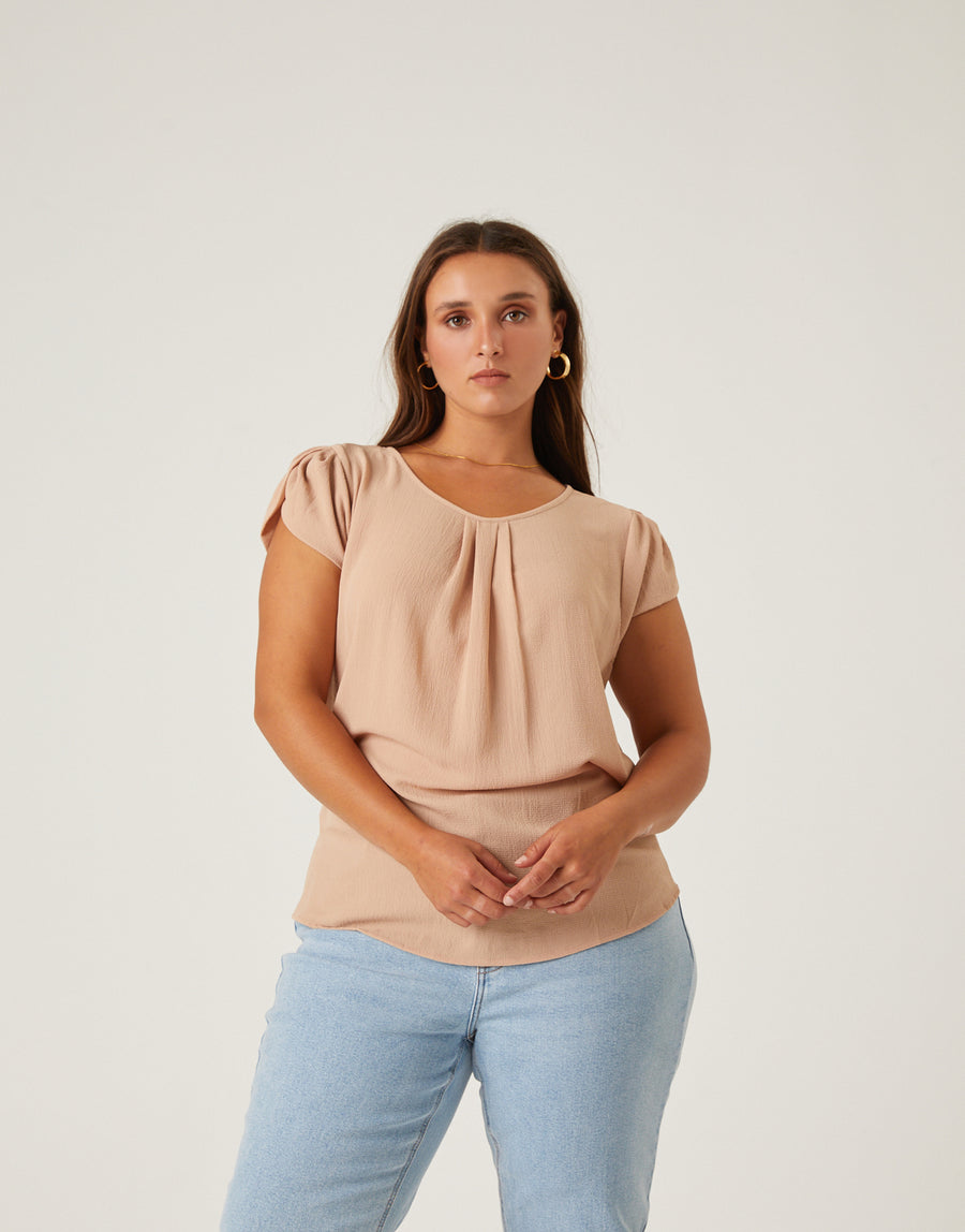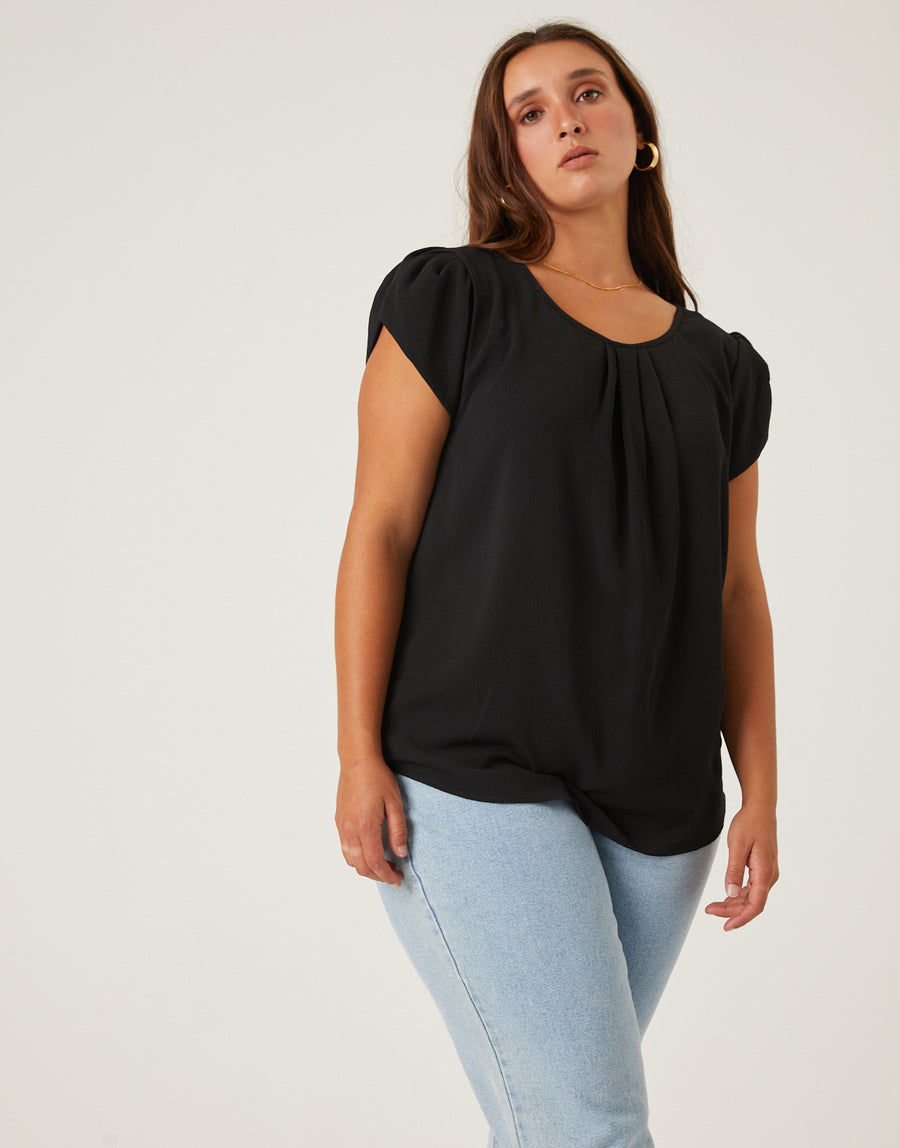 A simple piece that's great for dressing up for work or rocking with a casual pair of shorts, the Curve Crinkle Cap Sleeve Blouse is a lightweight, summer top. This feminine plus size blouse is simple and understated, the perfect top to add to your wardrobe.