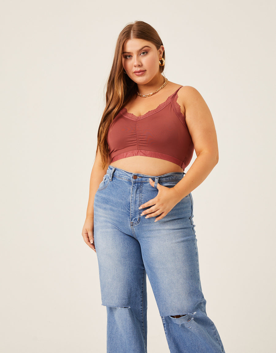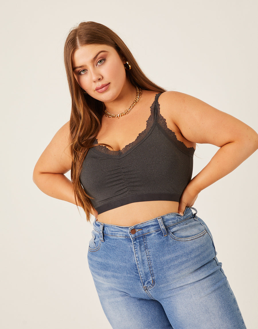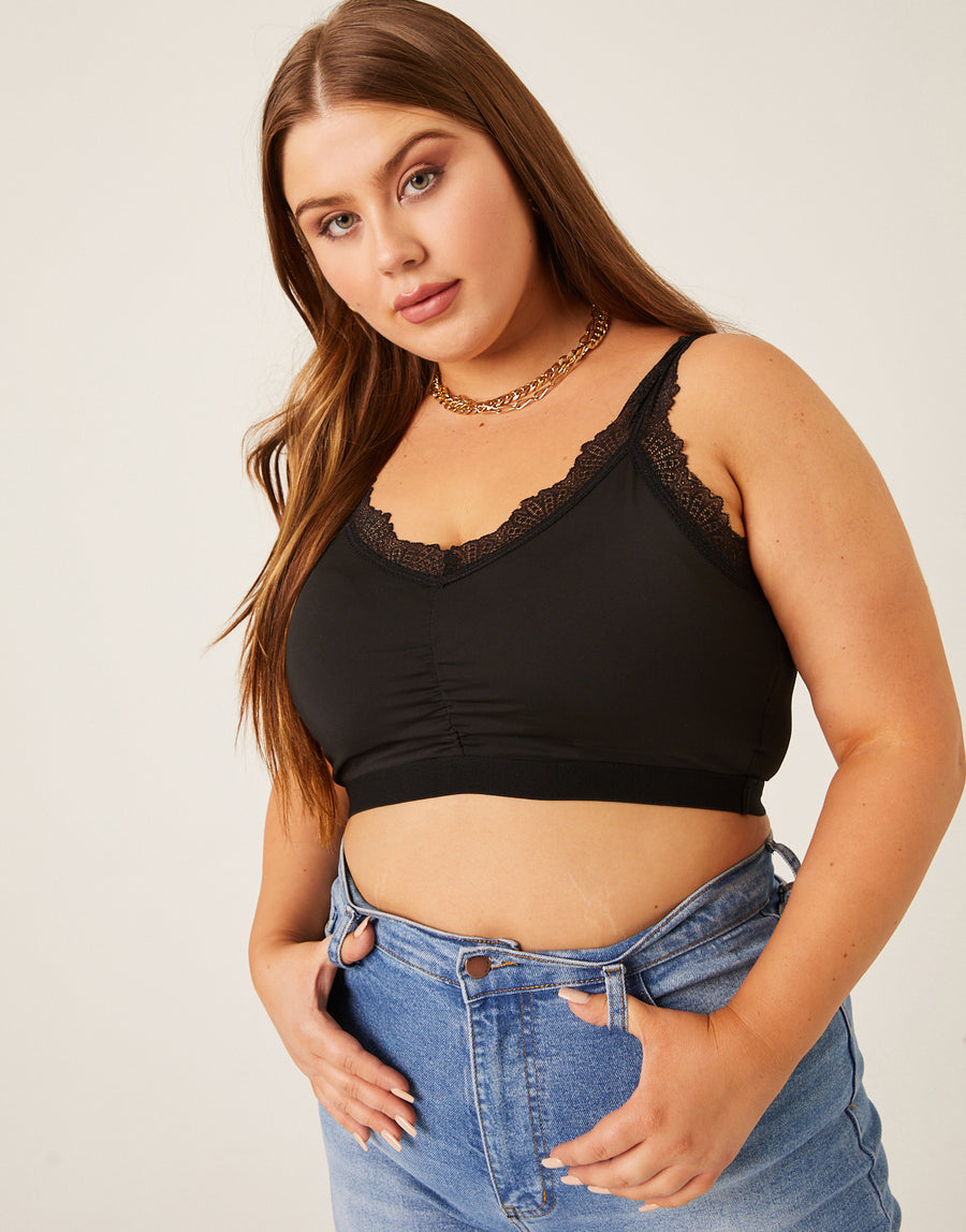 An easy undershirt or casual bra, the Curve Padded Lace Trim Bralette is comfortable and cute. This plus size bralette is comfortable enough to wear all day long. A full-coverage camisole bra hybrid, this piece is versatile and will quickly become a favorite. Plus, it's cute enough to wear on its own under a blazer for an elevated street-style effect.