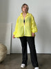 - This jacket is made out of a lightweight, non-stretchy material and features a zipper up the front, long sleeves, two pockets, and elastic at the sleeve cuffs.
