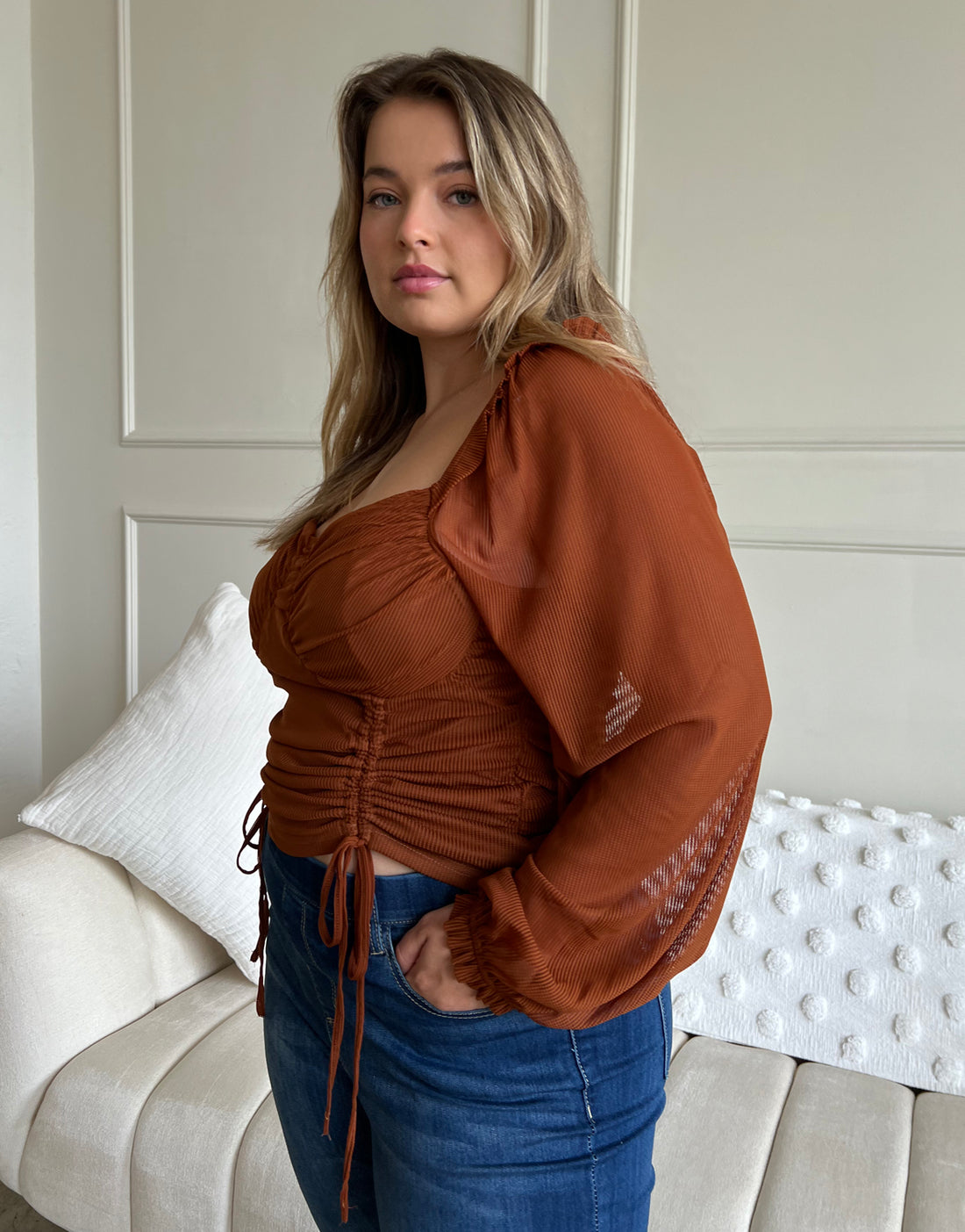 The Curve Long Sleeve Double Ruched Top is the ideal top for dressing up an outfit without overdoing it. Pair this plus size top with a pair of jeans for a snappy casual look, or dress it up with some slacks for a workplace look.