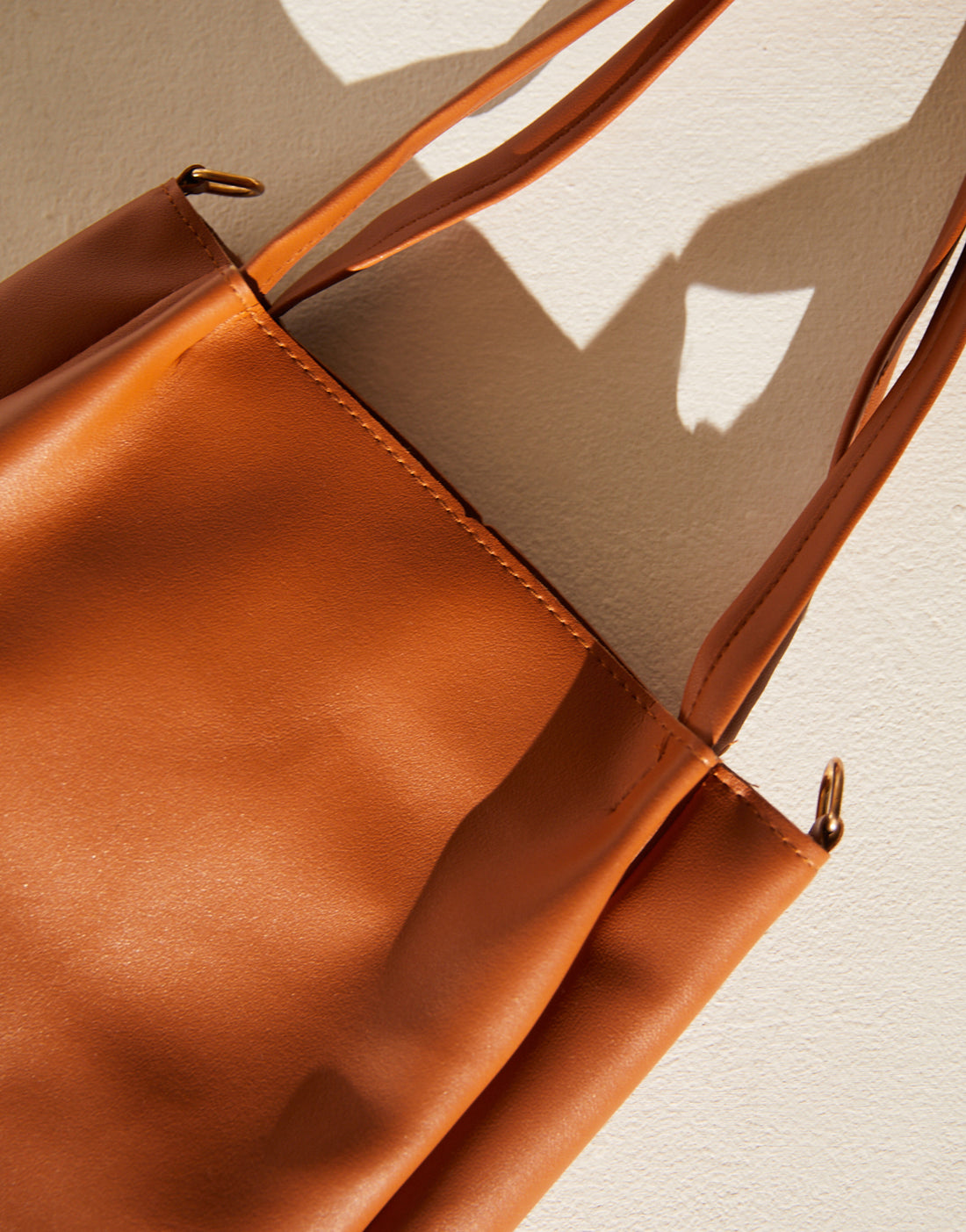 - This simple faux leather bag features one compartment, two attached medium length handles, and one detachable longer strap.