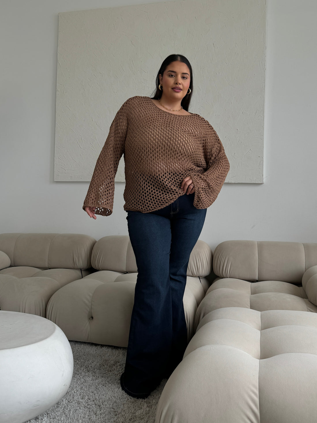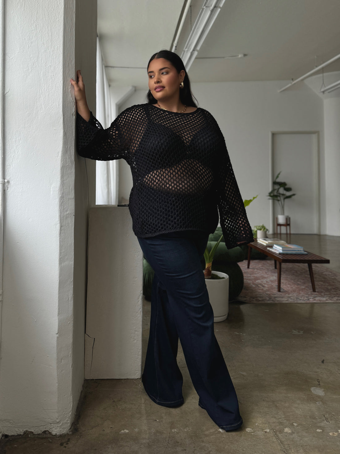 Breezy, bold, and made to layer—the Plus Size Crochet Knit Top is your new go-to for statement-making style. Featuring wide bell sleeves and an open-knit design, this top delivers texture and movement while keeping things light and breathable. Wear it over a bandeau or bralette for a flirty vibe, or throw it on over your swimwear for effortless resort-ready glam. The relaxed fit flatters every curve, making it perfect for year-round layering. Equal parts cozy and cool girl—it’s the piece you didn’t know your closet was missing.