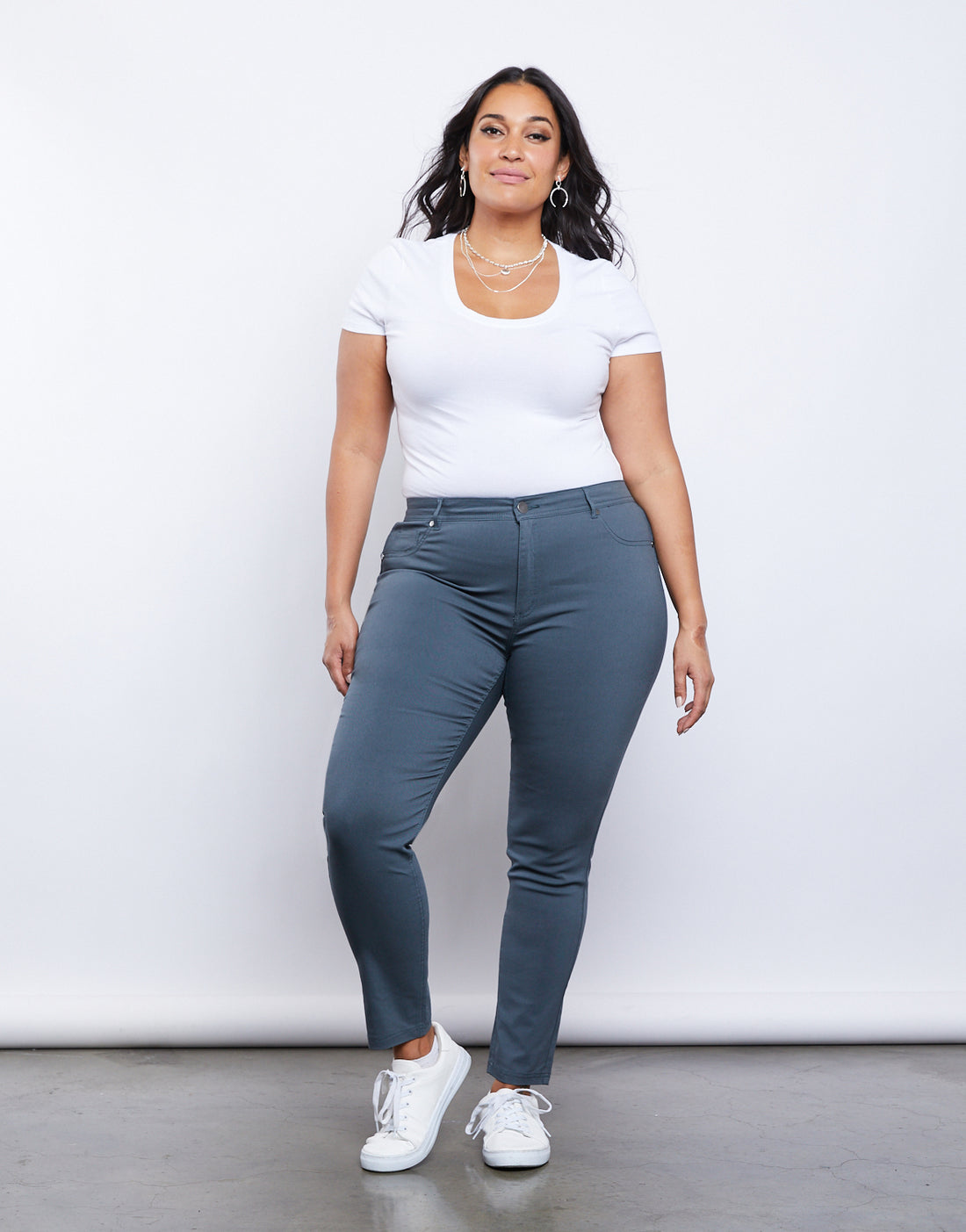 If you're looking for all-day comfort while still looking stylish and put together, the Curve Everyday Jeggings might just be exactly what you need. These fitted jeggings have a zipper and button closure, five belt loops, and a slim leg fit. They also have false front pockets and real back pockets. These pants look great with a flowy top for a slightly more dressed-up look or with a tied off t-shirt for a casual outfit.
