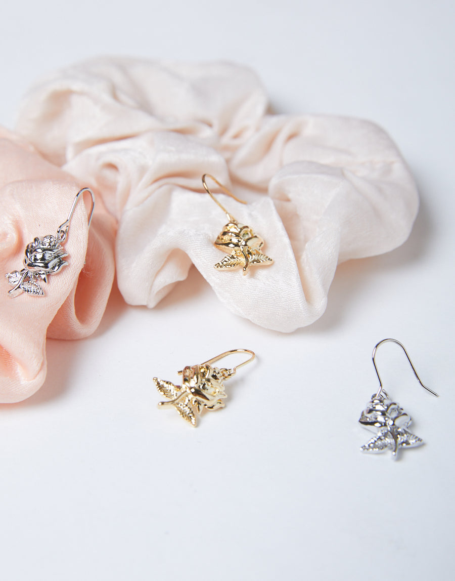 The Rose Dangle Earrings are both stylish and on-trend, and something that you need to add to your jewelry collection ASAP. Featuring a fish hook style earring and a rose charm, these earrings are dainty and feminine and perfect for day to day wear. Wear these earrings alongside some simple silver or gold studs or some Huggies if you have multiple piercings, and your look is complete.