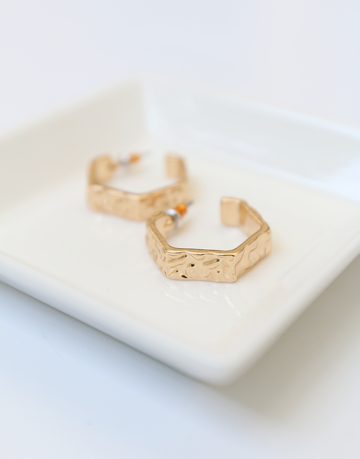 The All the Right Angles Earrings are a super cute way to dress up any outfit. These textured hexagon shaped earrings are small and minimal, and they come with backings for secure wear.