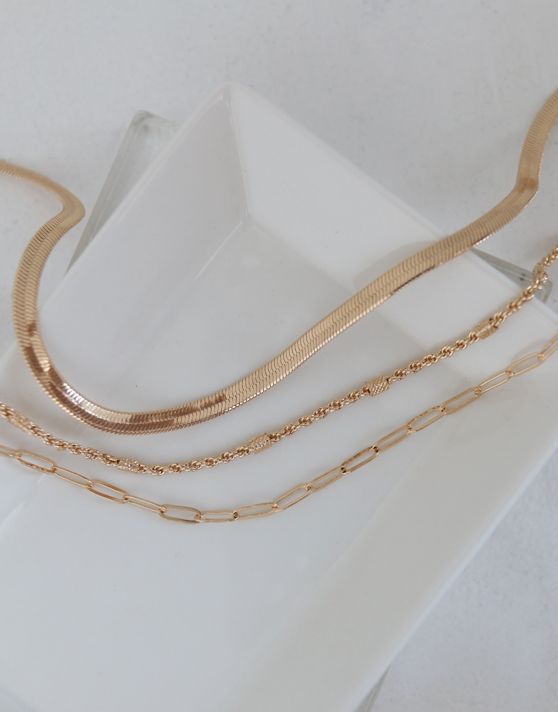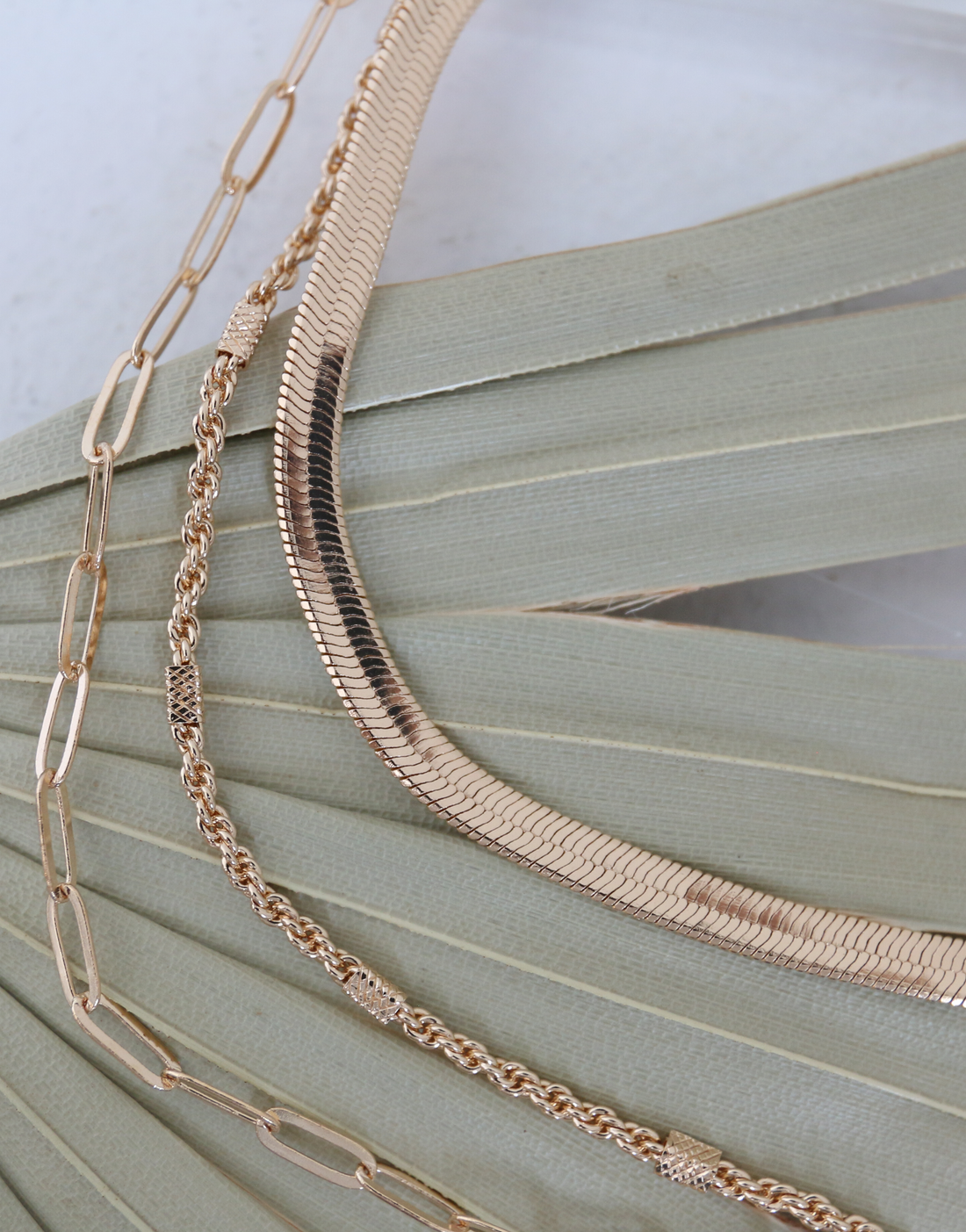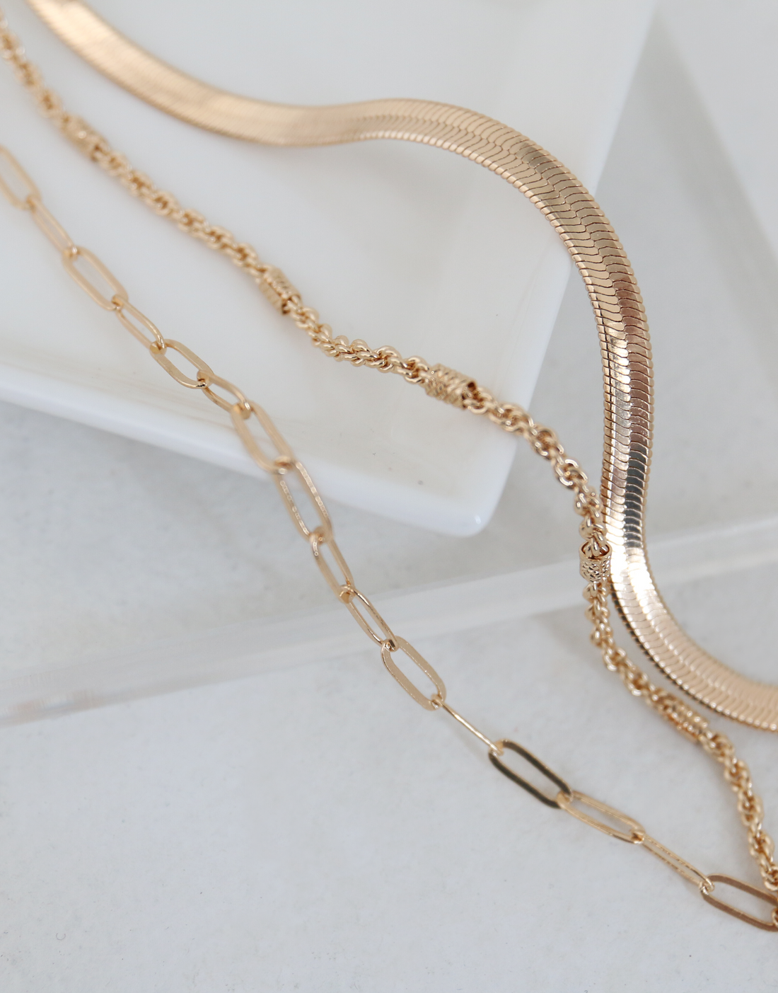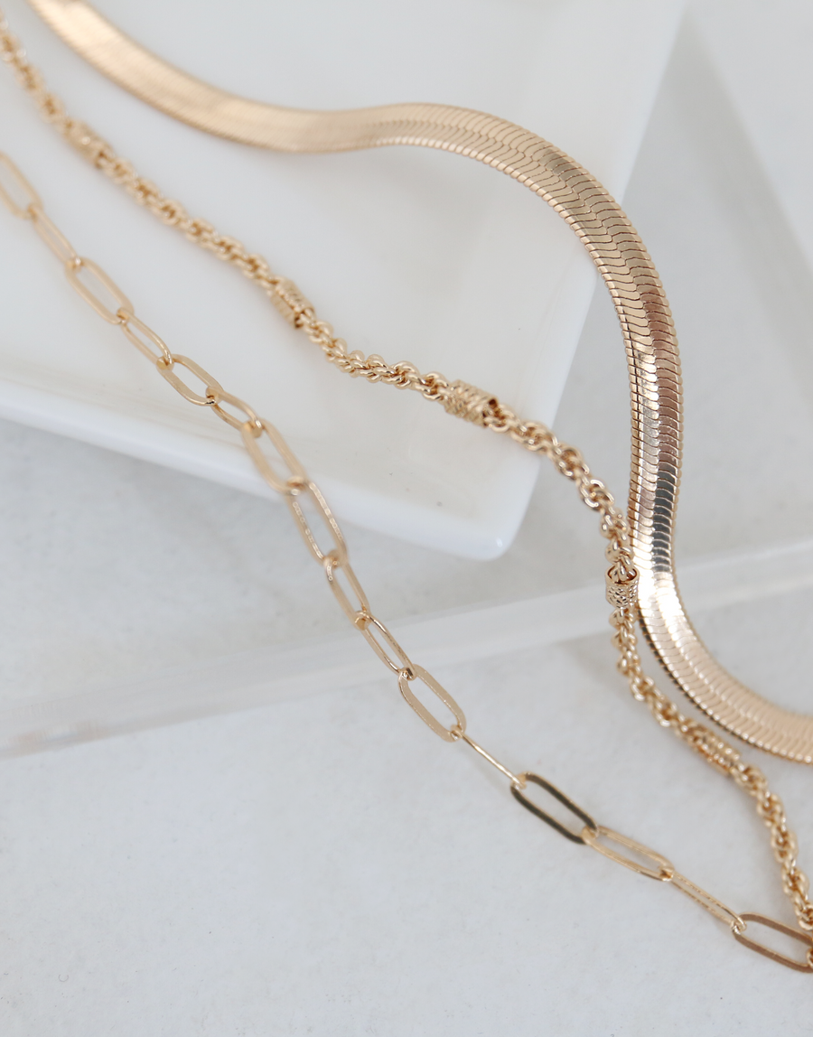 The Amberley Layered Chain Necklace is perfect to complete your night out outfit. With a snake, link, and cord chain, this necklace is the complete package.