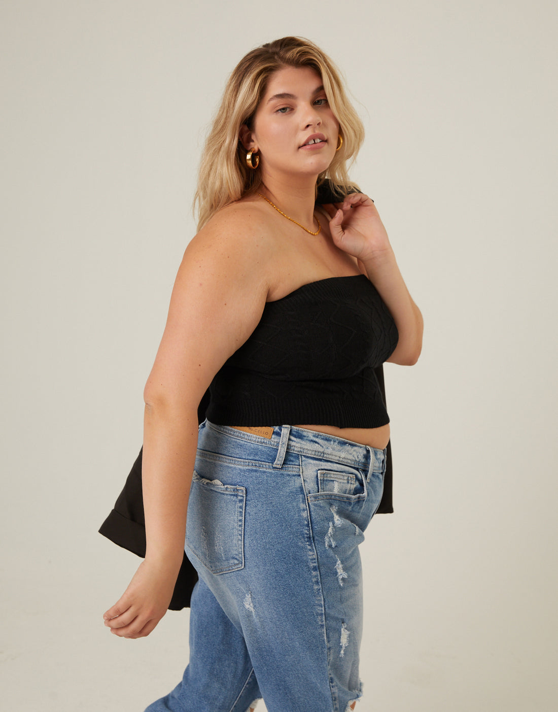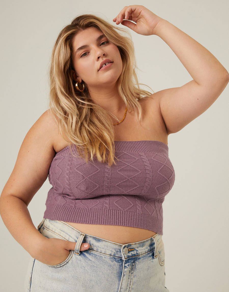 Curve Cable Knit Sweater Tube Top Plus Size Tops -2020AVE