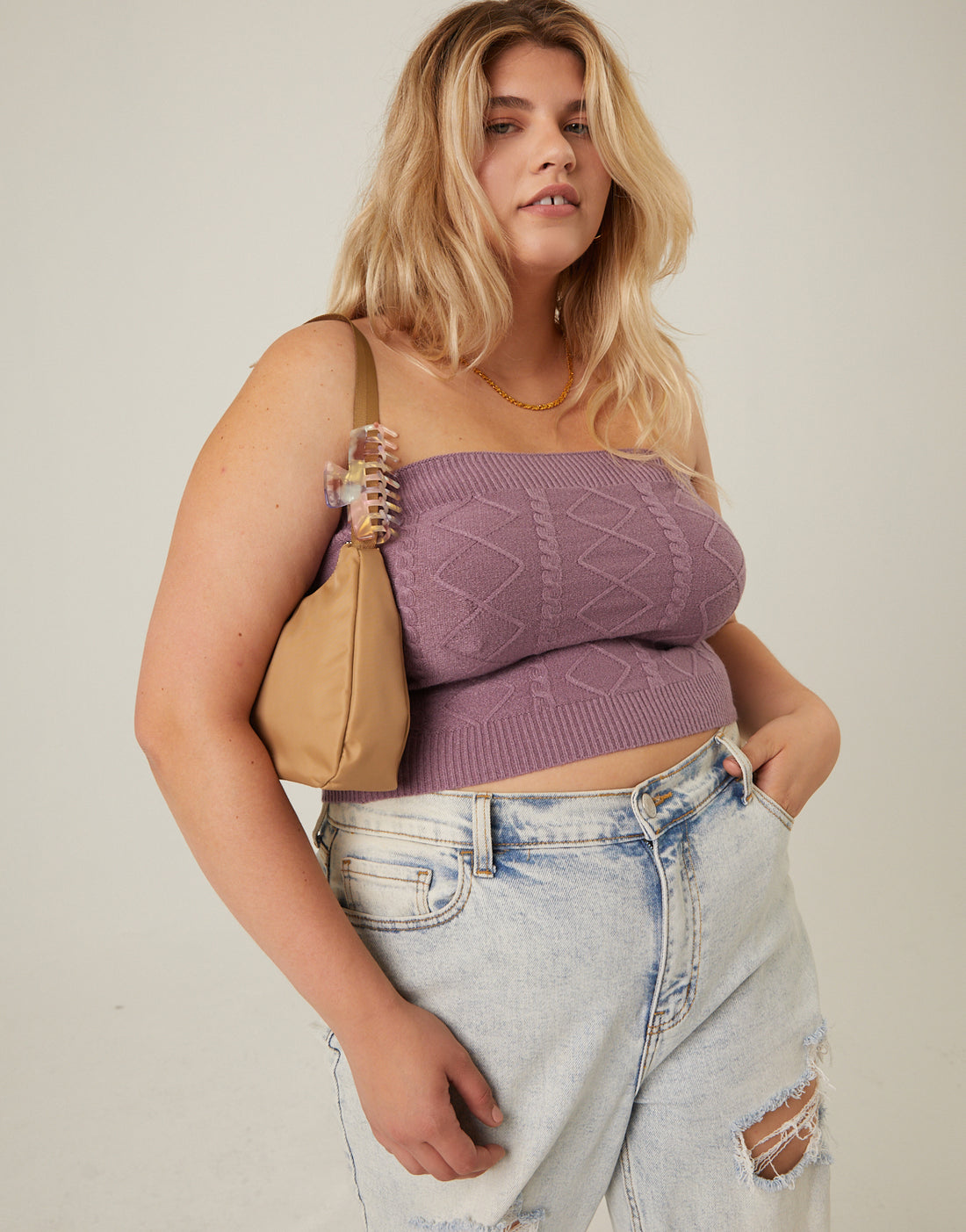 Curve Cable Knit Sweater Tube Top Plus Size Tops Purple 1XL -2020AVE