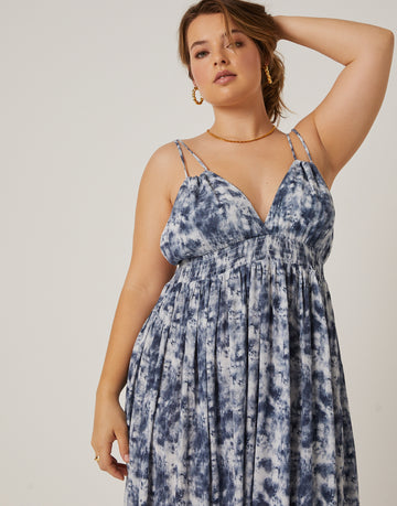 The Curve Crepe Tie Dye Maxi Dress is a modernized throwback with a flowy silhouette and and a smocked waist.