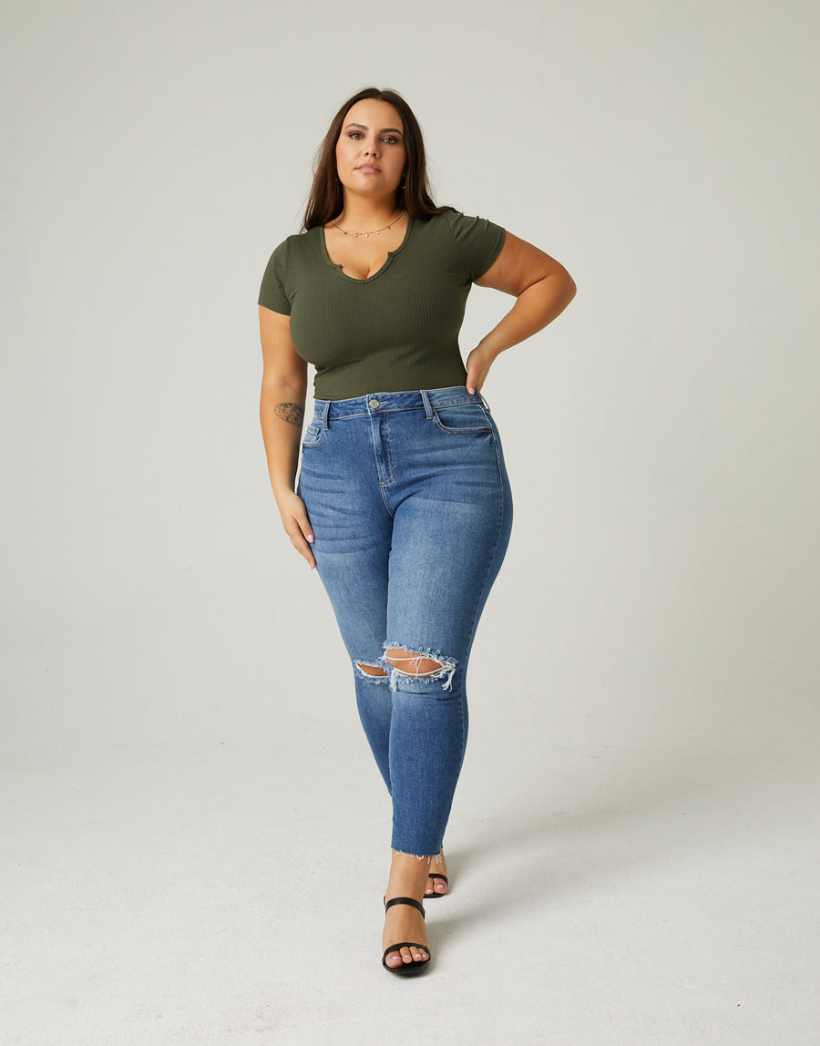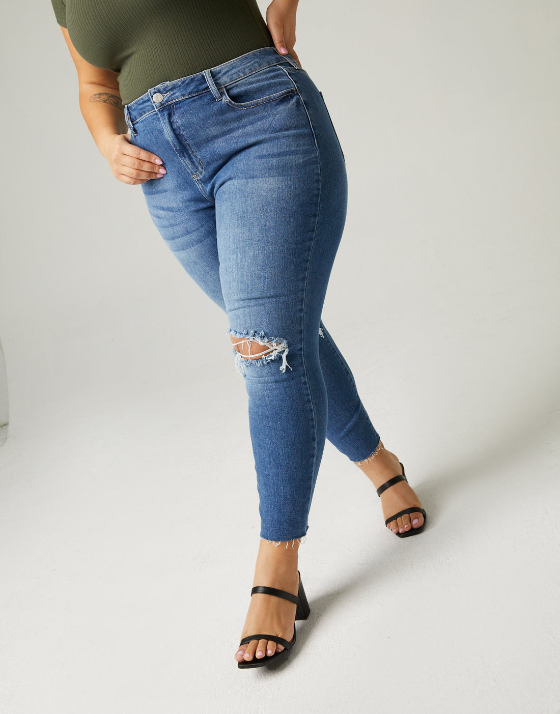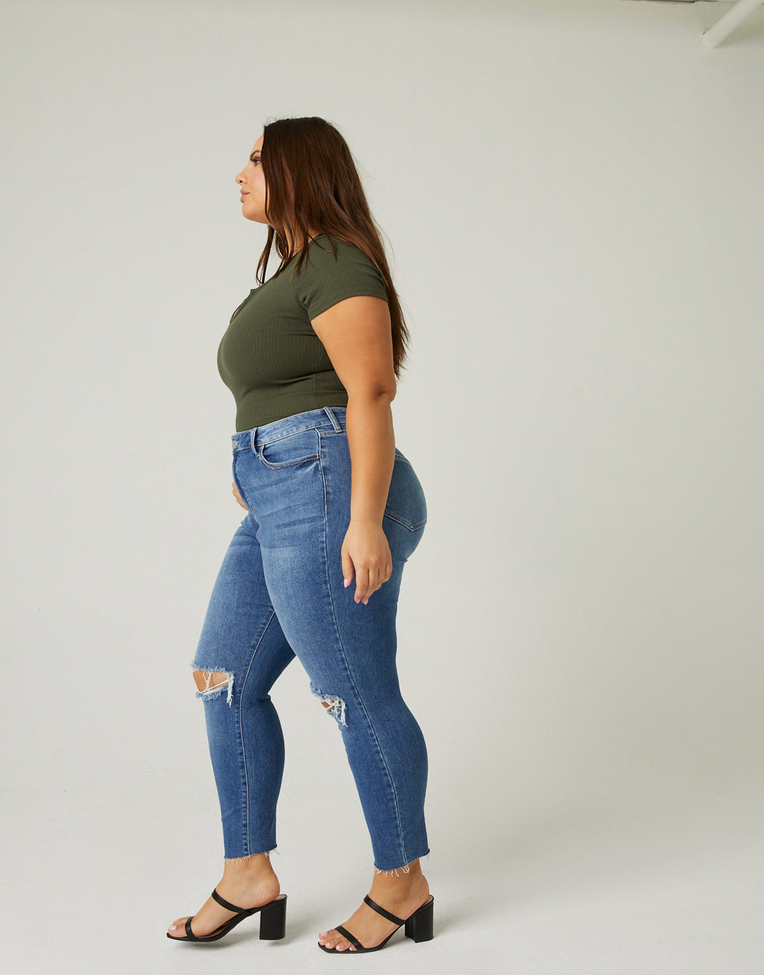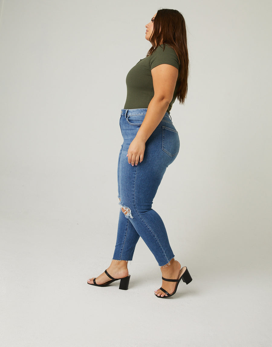 The Curve Distressed Knee Mom Jeans are as comfortable and trendy as you can get.