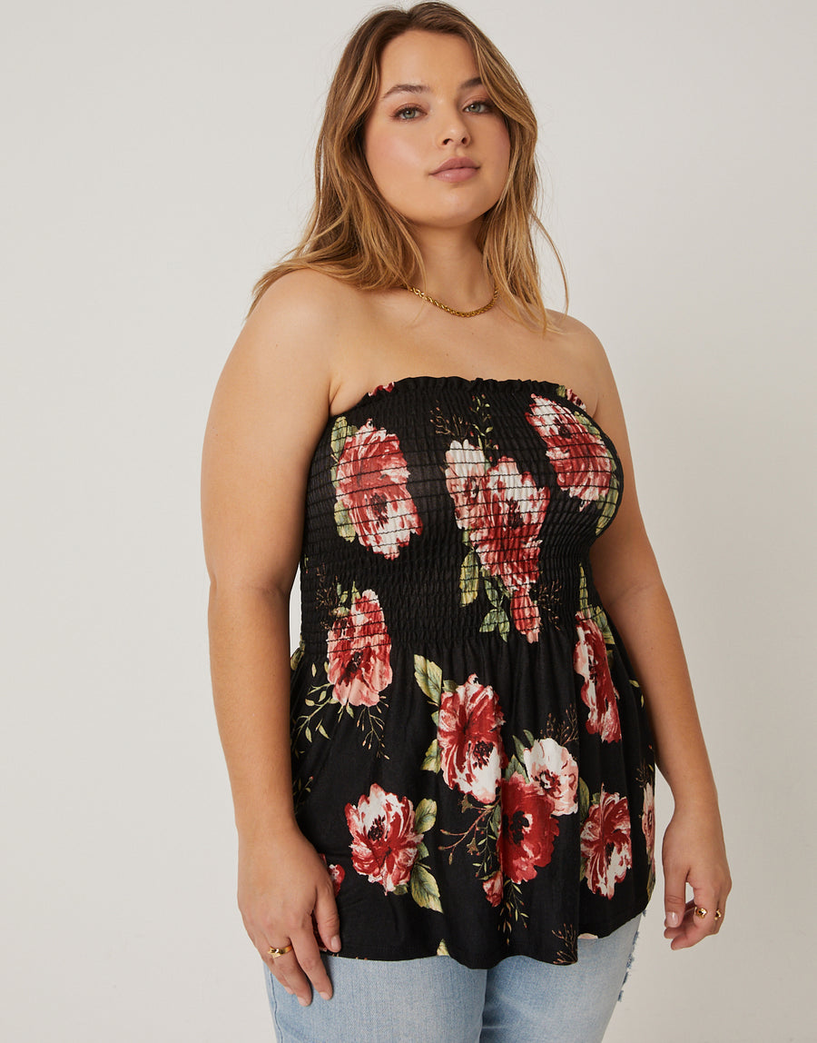 The strapless Curve Floral Knit Babydoll Top manages to be both sweet and sultry.