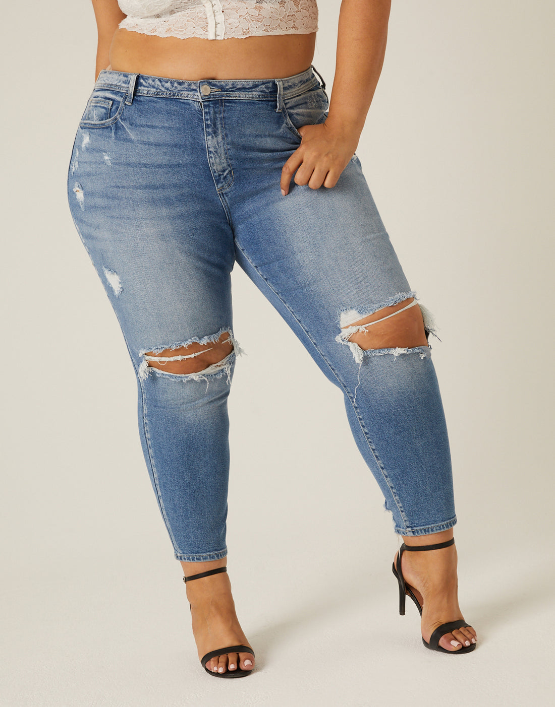 The Curve Ripped Skinny Mom Jeans are stretchy, comfortable, and super on-trend.