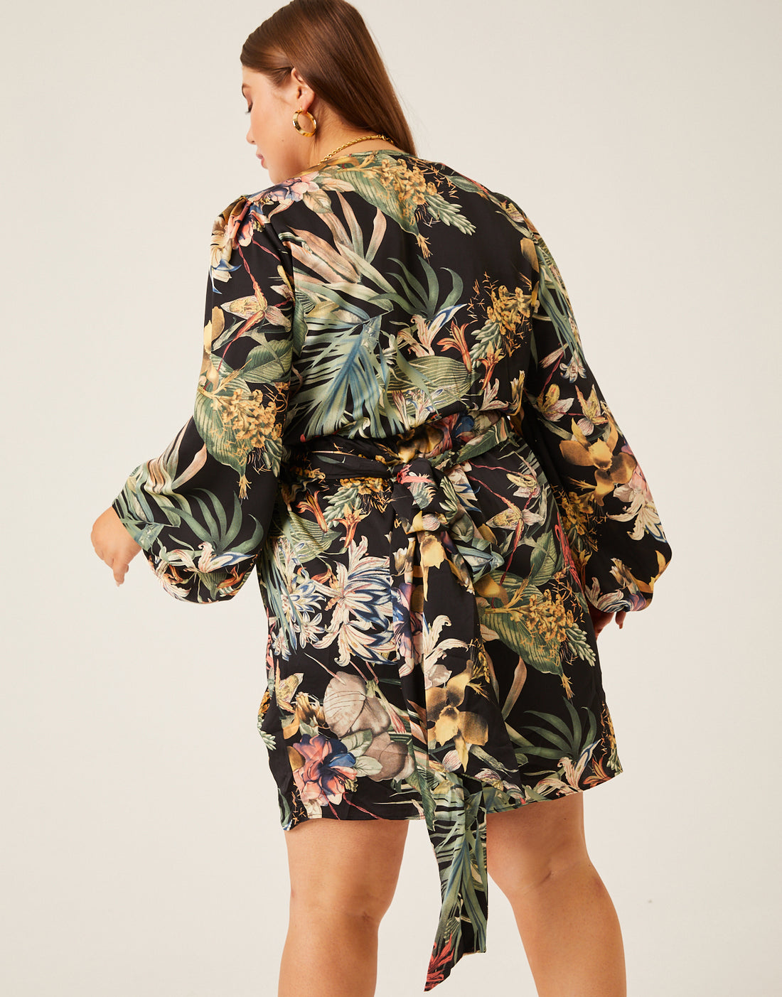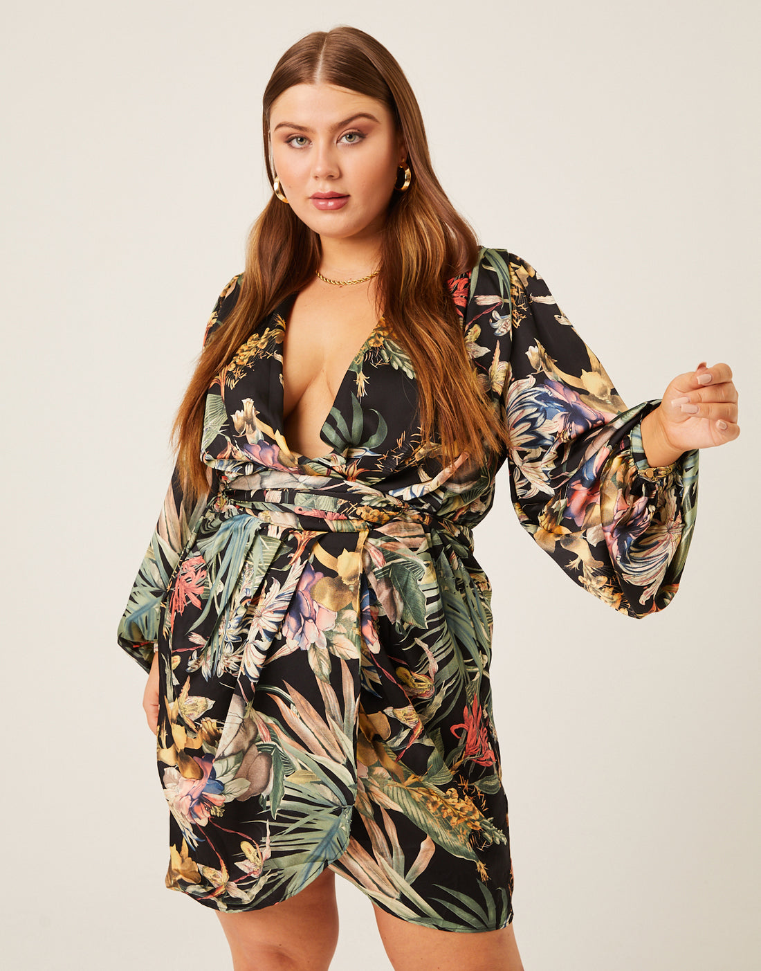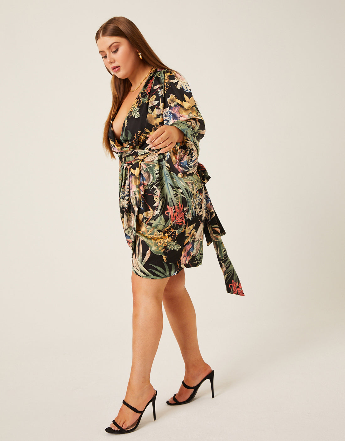 The Curve Satin Floral Wrap Dress is a fun, unique dress, perfect for vacations or warm-weather brunches.
