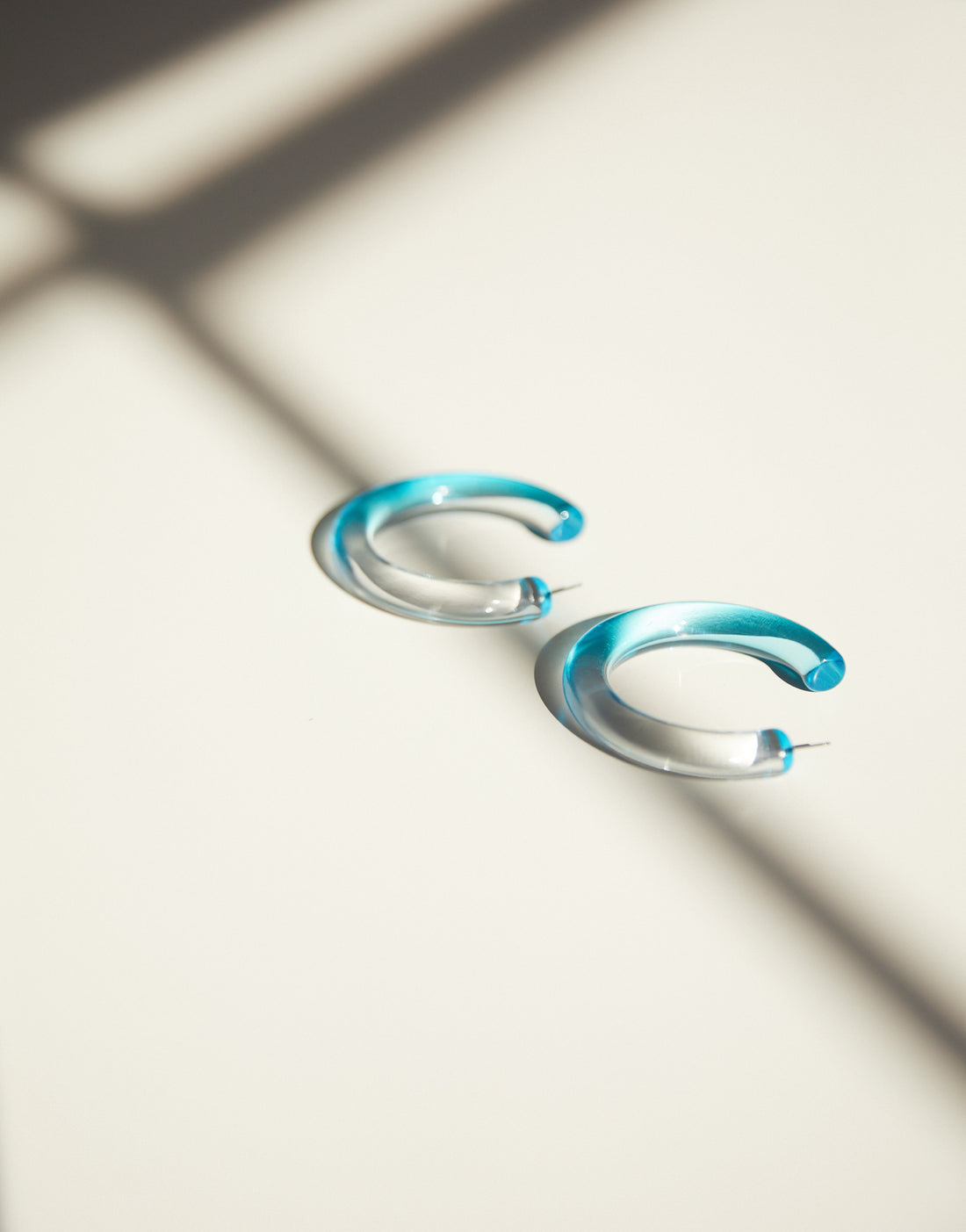 The Plastic Ombre Hoop Earrings are fun and funky, a perfect statement piece to make any outfit a bit more fun.