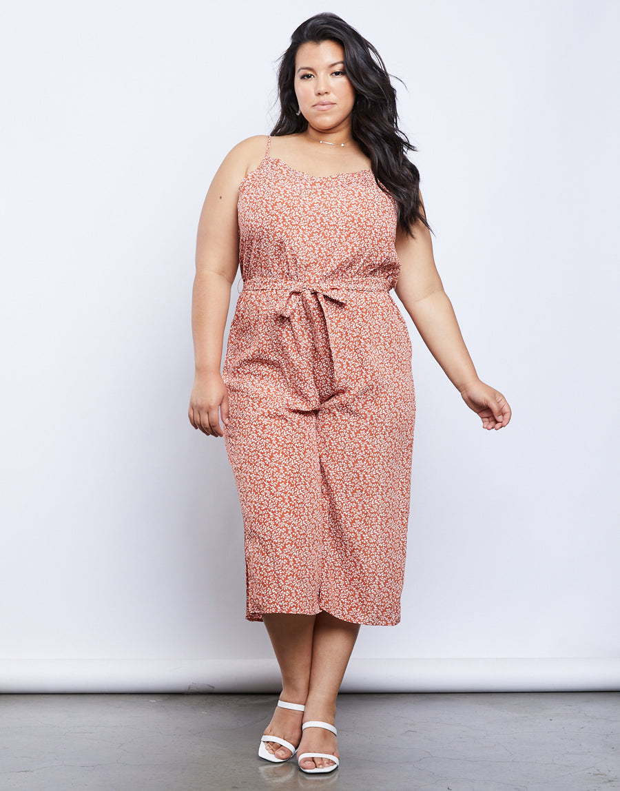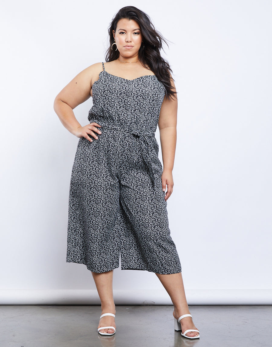 Looking for a casual yet feminine piece? We've got you covered! The Curve Faye Floral Jumpsuit is your match. Featuring a beautiful mico floral print, thin straps, and a cinched waist, this jumpsuit is extremely flattering and comfortable, and perfect for everyday wear. Pair this jumpsuit with some platform sandals or sneakers, and a light wash denim jacket and you're good to go!