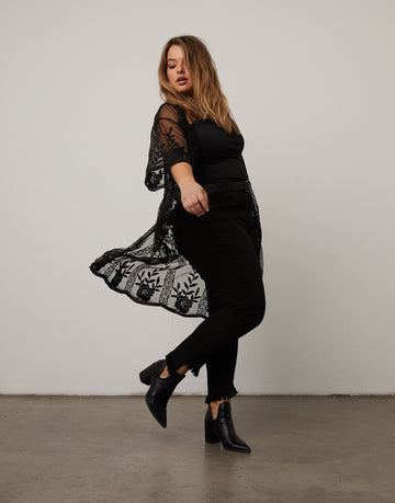 The Curve Frayed Ankle Jeans add a bit of detail to a classic pair of jeans. These high waisted slim-leg jeans have a frayed ankle hem, four pockets, five belt loops, and a zipper fly. Additionally, the jeans have spandex in them, making them super stretchy and comfortable for all-day wear. The frayed hem is best shown off with a pair of strappy heels or combat boots, and the jeans would pair perfectly with a graphic tee for a great alternative look.