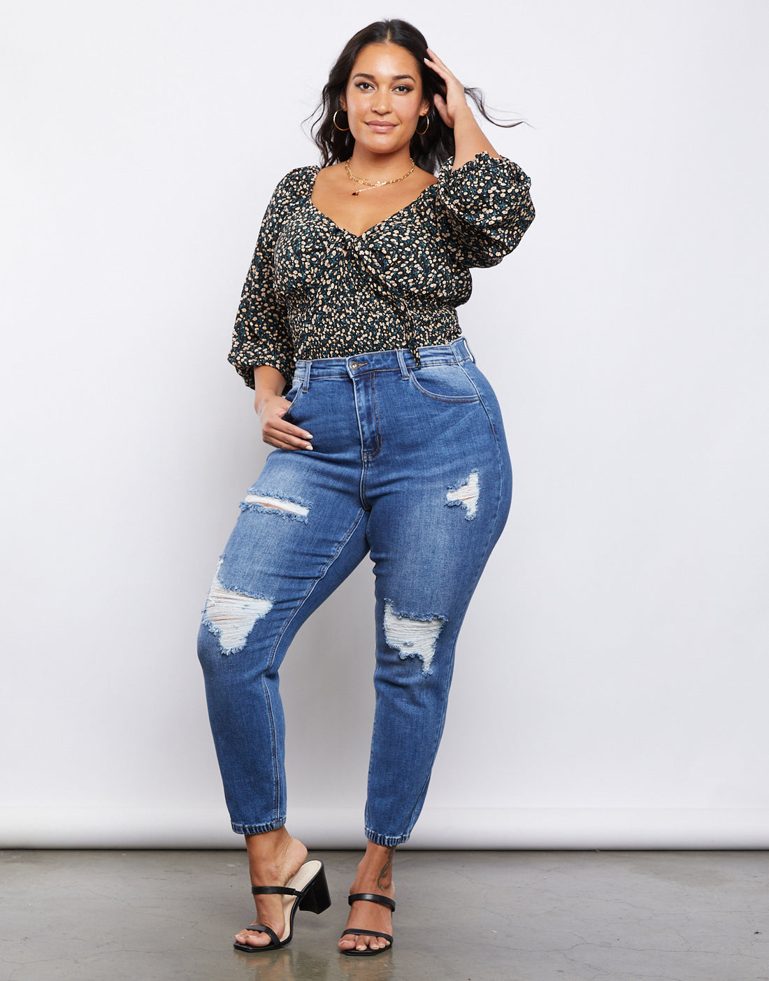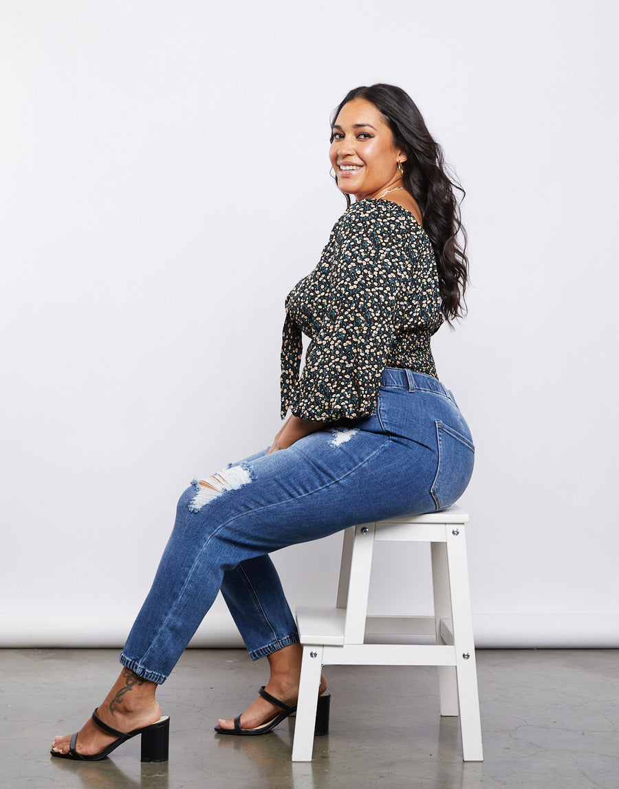 The Curve Game Changer Distressed Jeans have everything you want in the perfect pair of jeans: functional hip pockets and belt loops, a long zipper fly, a high waist, and cute distressing. Plus this pair has a feature that's an absolute game changer: stretchy elastic around the waistband. That way, the jeans will fit perfectly around your thighs and your waist - no waistband gap!