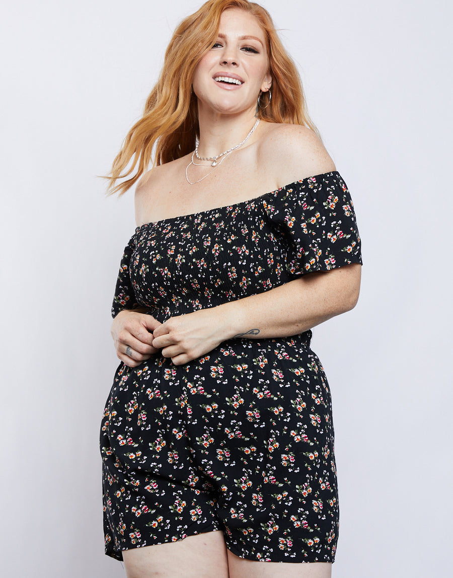 The Curve Laced Up Floral Romper is a great way to look cute while staying comfortable all day long. The off-the-shoulder piece has a smocked waist and bust and a lace-up detail on the back. The shorts are lined to make sure you stay covered and the short sleeves are loose and flowy. This piece is easy to layer and pairs perfectly with tie-up sandals. A perfect outfit for a first date!