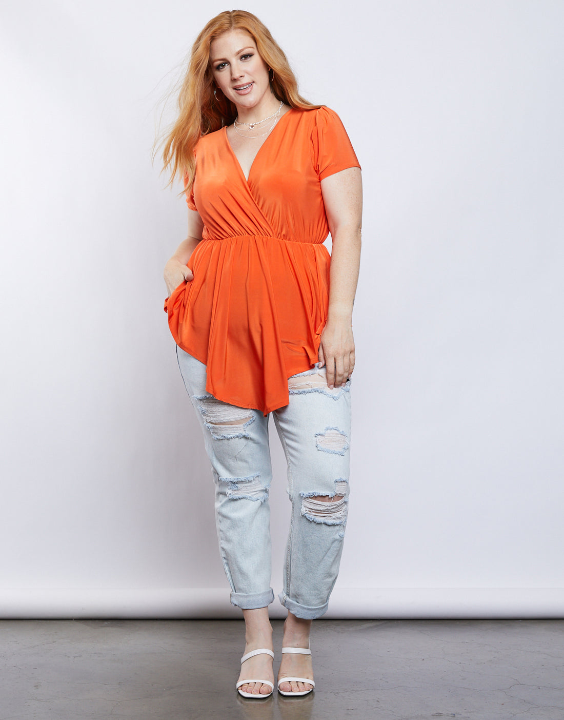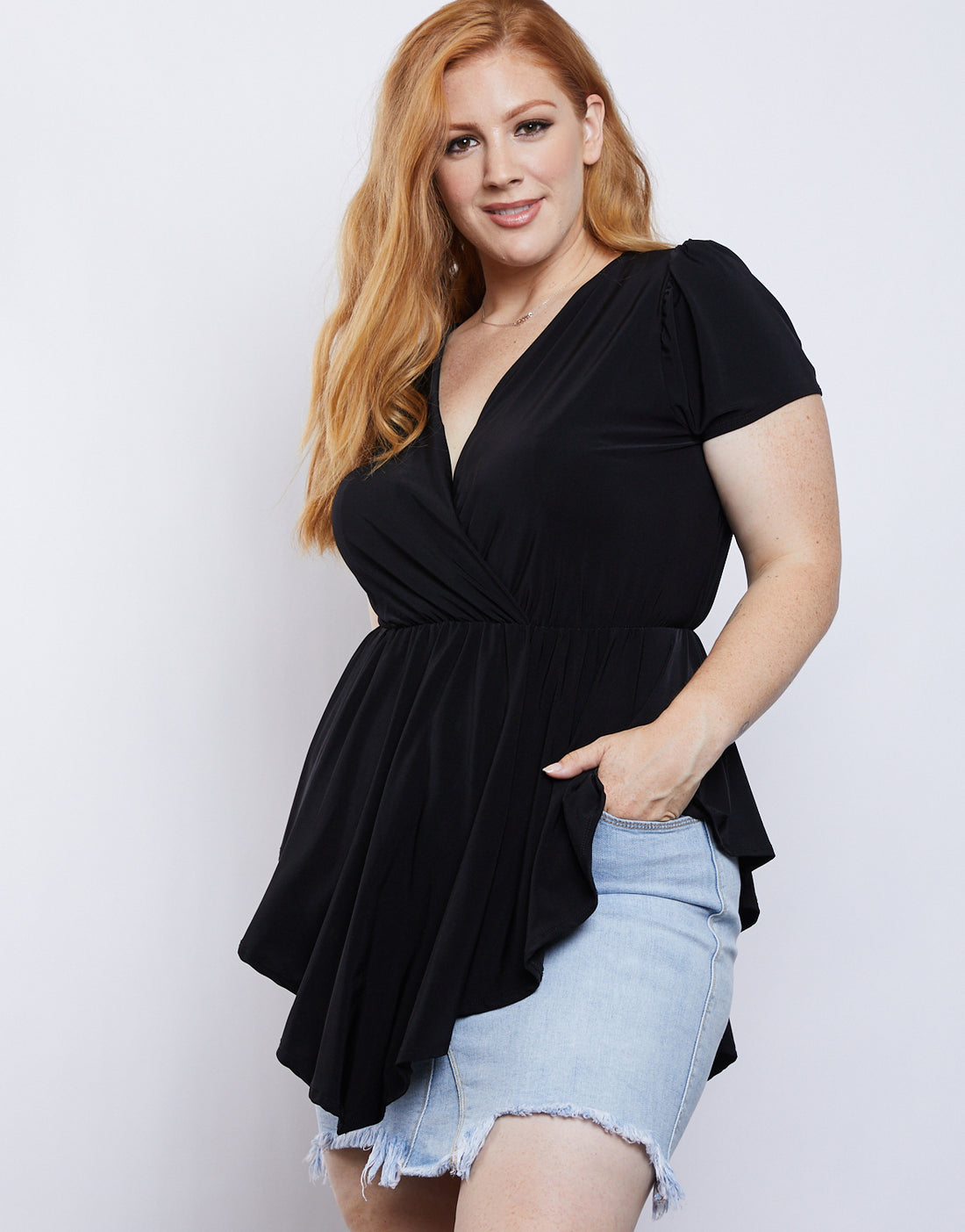 We're confident that you'll love the Curve Lauren Surplice Blouse as much as we do! The top's deep v-neck surplice bust is accompanied by an elastic waist, flowy sleeves, long bottom hems that come to a point, and an open back with a simple tie across the shoulder blades. The drapey, flowy top is perfect for nights out on the town and beach days alike! Whether you dress it up or down, add a long necklace to complete the look!