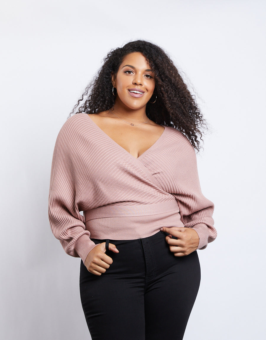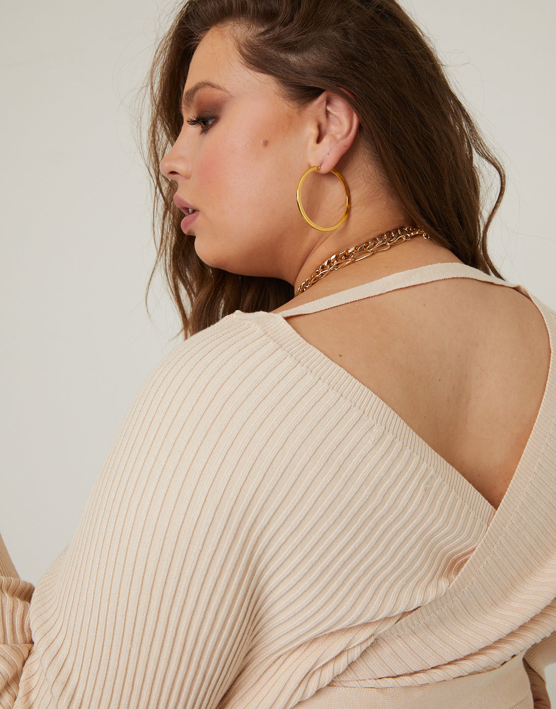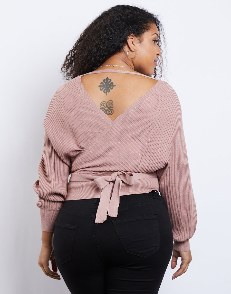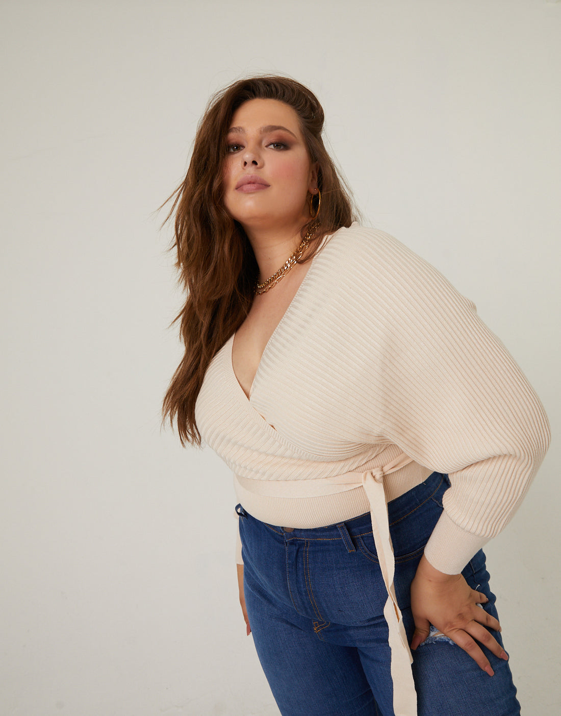 The Plus Size Leigh V-Neck Sweater is simple and elegant, making it a great wardrobe staple all year round. The sweater is made from a mid-weight, ribbed material and features a surplice style, a v-shaped neckline, a deep v-shaped hem on the back, a small strap across the back of the neck, tapered wrists, and a matching belt that detaches and can be tied however you prefer. It's a super flattering top that's easy to dress up with a long skirt, a pair of cute heels, and some layered necklaces. Easy as that!