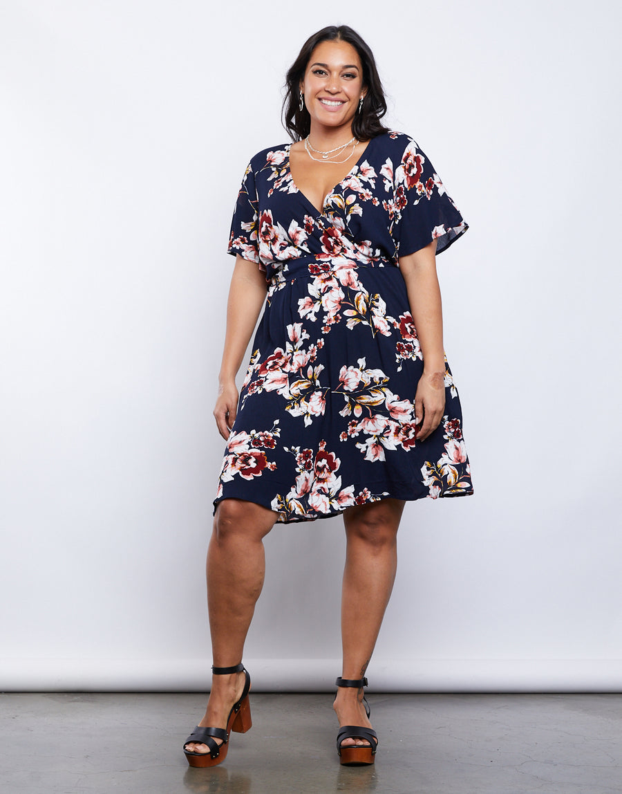 Frolic through the flower fields in the Curve Lille Sundress! The dress boasts a surplice top, a cinched elastic waist, flowy short sleeves, and a knee-length hem. The dress also comes with a detachable, matching tie belt to add shape and detail! The floral pattern is a standout and pairs well with simple sandals for an easy outfit. What could be better?