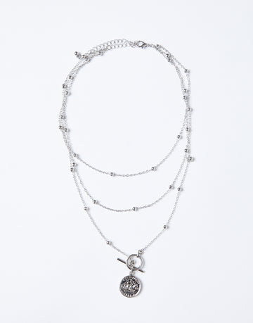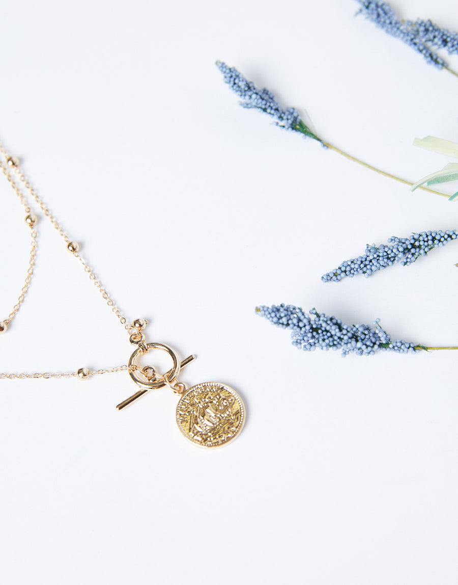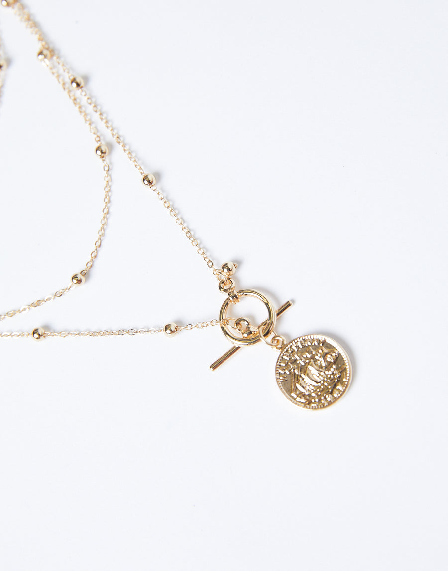 The Treasure Chest Layered Coin Necklace is the piece of jewelry that you never knew you needed but definitely do. This cute piece is in three layers, two simple chains with small balls at 1.5" increments, and the third and longest is the same but with a decorative toggle clasp and a dime-sized coin. Lengths of the chains fall at 12", 14", and 16" and have a 3.5" extension. Wear this necklace with your favorite top for a little bit of glam that's not overwhelming!